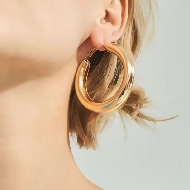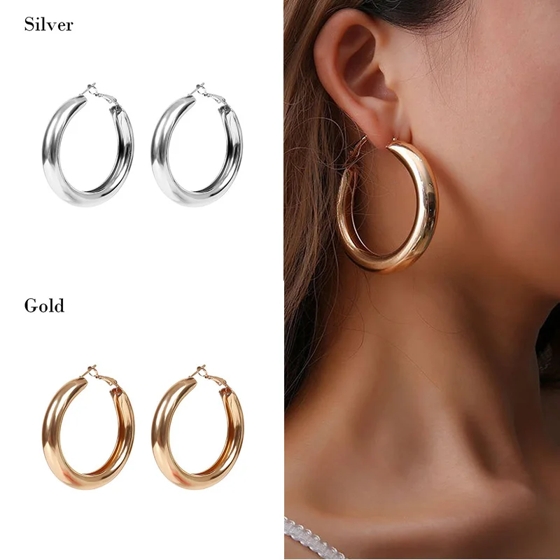 Женские большие золотые и серебряные серьги-кольца из сплава, 50 мм, минималистичные толстые круглые кольца в виде трубки, серьги в стиле рокпанк
