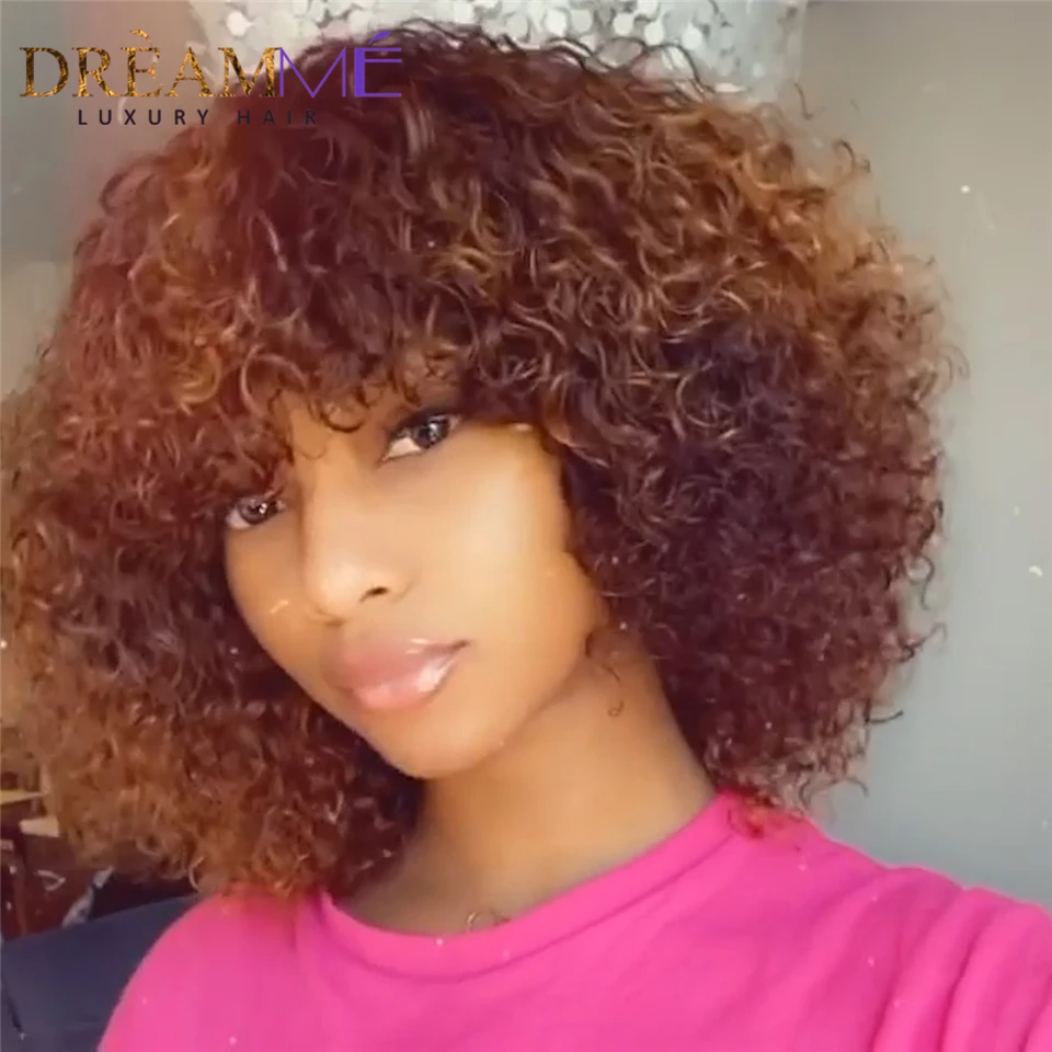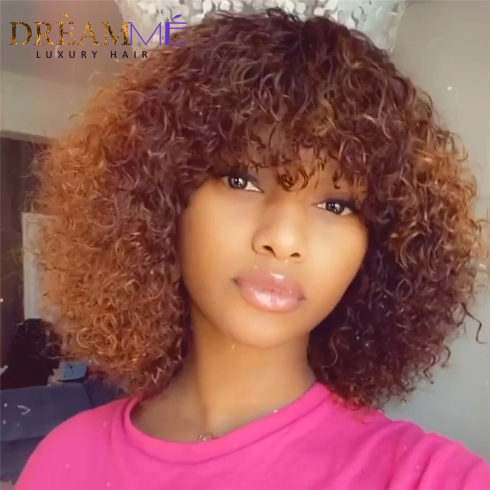 Кудрявые короткие парики Джерри из человеческих волос с нарезанными волосами с челкой медовый светлый цвет Омбре без шнуровки передний парик для черных женщин неповрежденные волосы