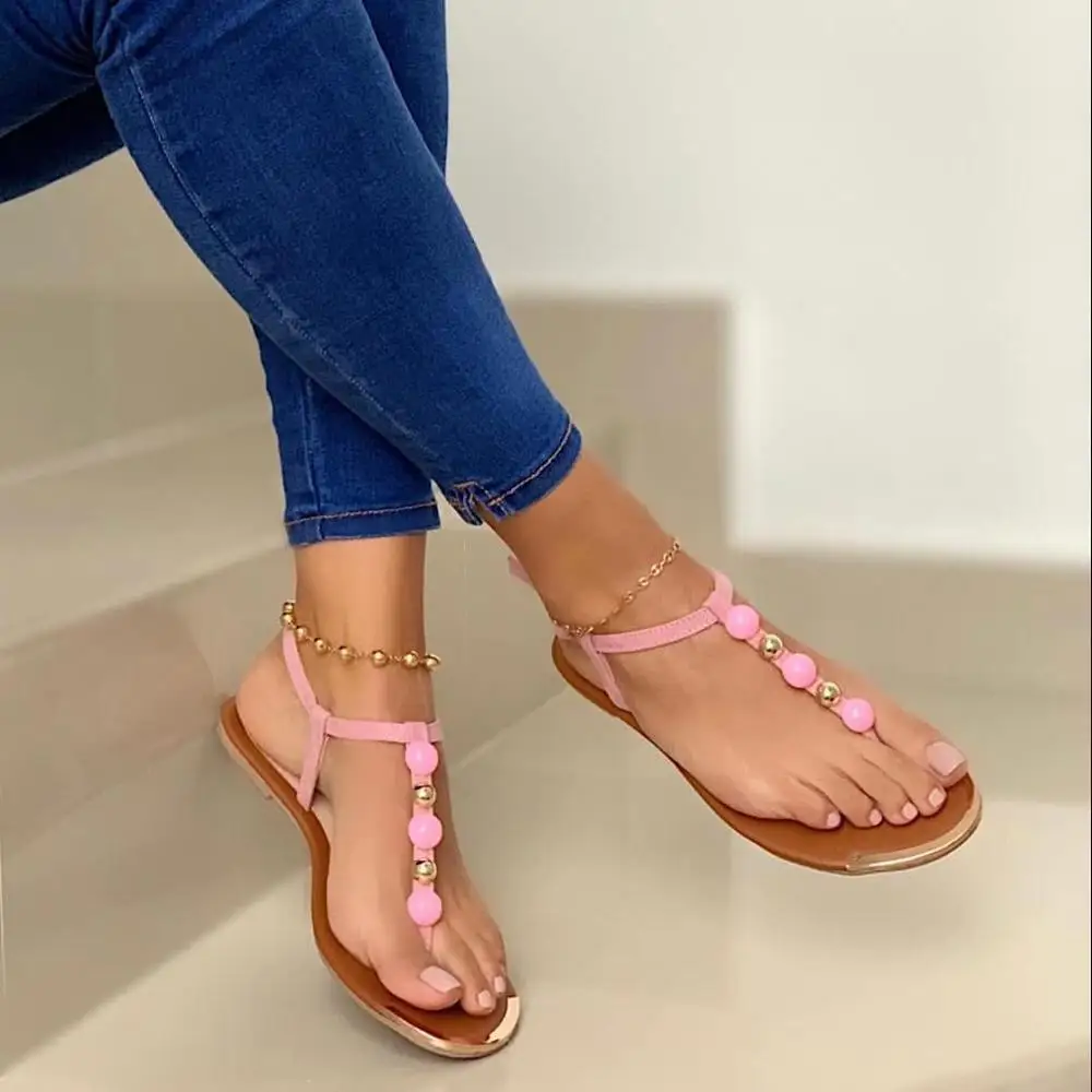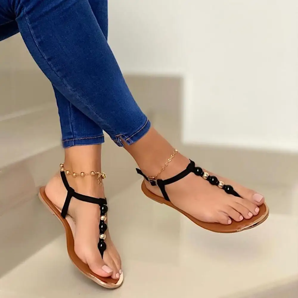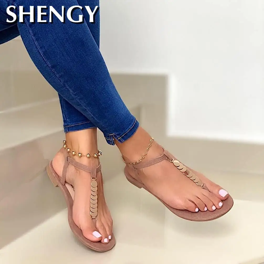 Женские босоножки с жемчугом SHENGY, однотонные шлепанцы с пряжкой, пляжная обувь, повседневные, размера плюс