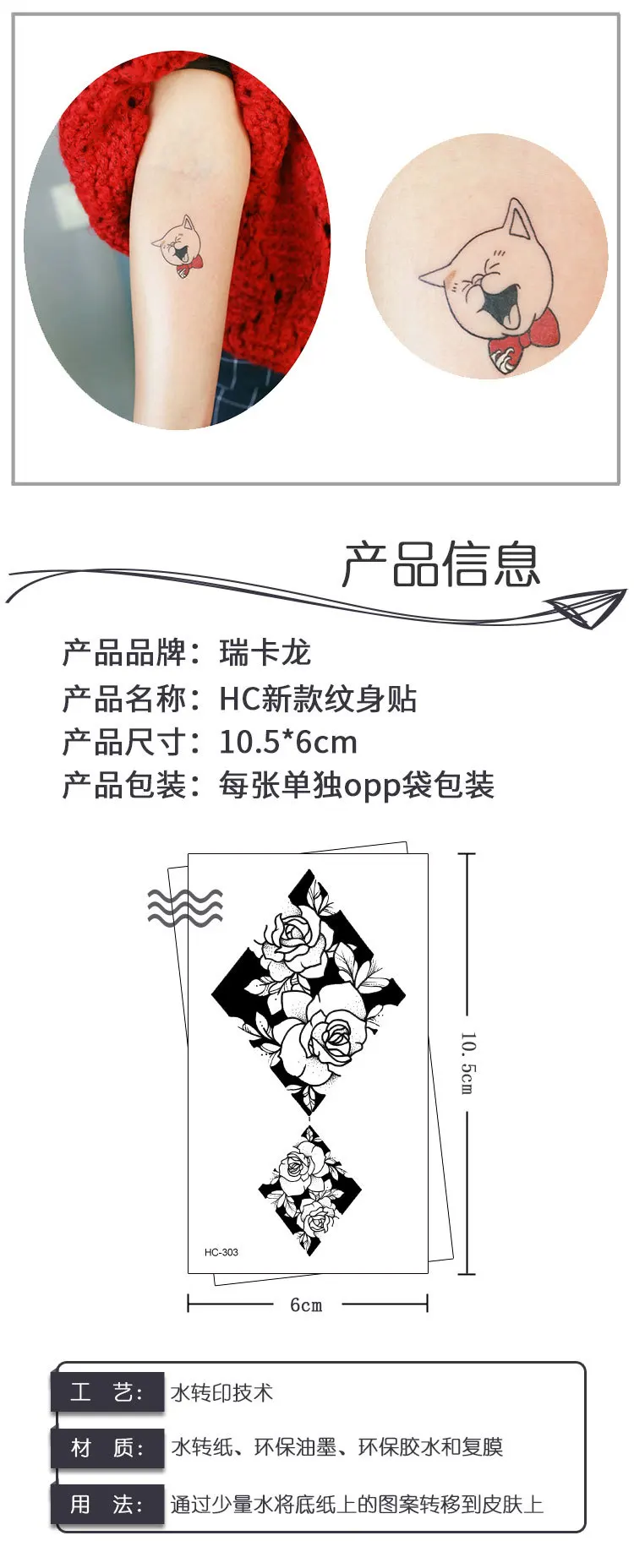 Женские временные тату-наклейки из хны Rocooart, Черные Водонепрони...