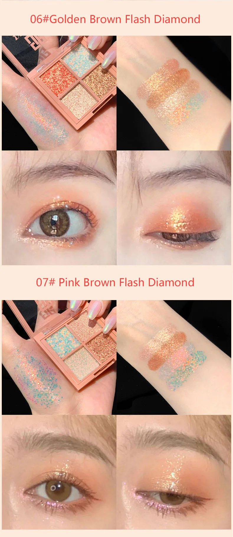 Палетка теней для век, 4 цвета, блестящие, матовые, большая с блестками пигмент, Палетка теней для век, Алмазный перламутровый макияж, TSLM2