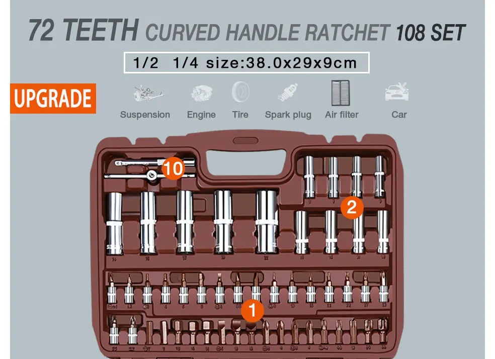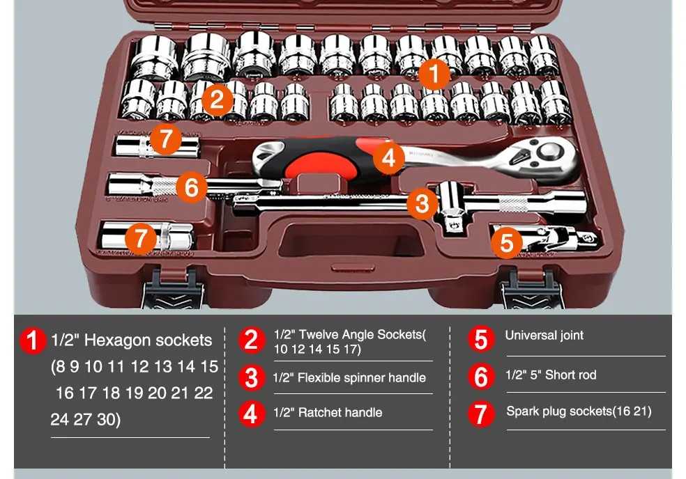 Набор торцевых головок DTBD, универсальный инструмент для ремонта автомобилей, набор трещоток, динамометрический ключ, комбинированный набор ключей, многофункциональные инструменты сделай сам