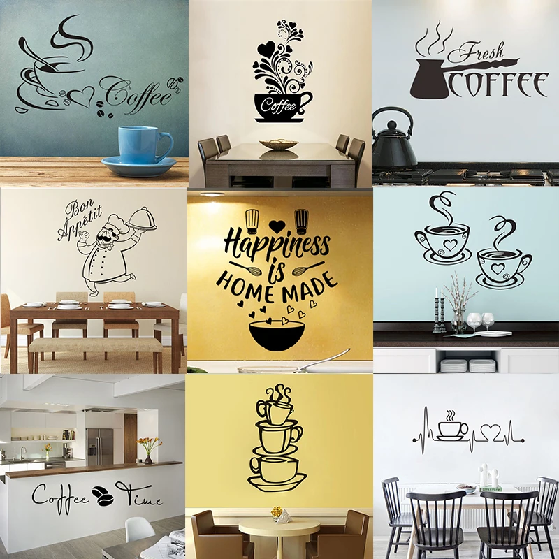 28 стилей наклейки на стену кофе Винил настенные кухонные наклейки ...