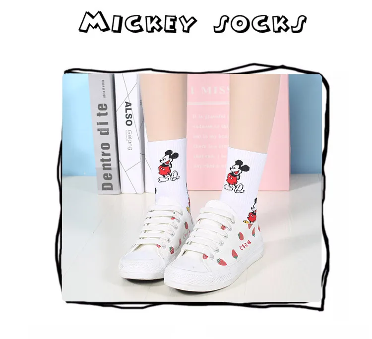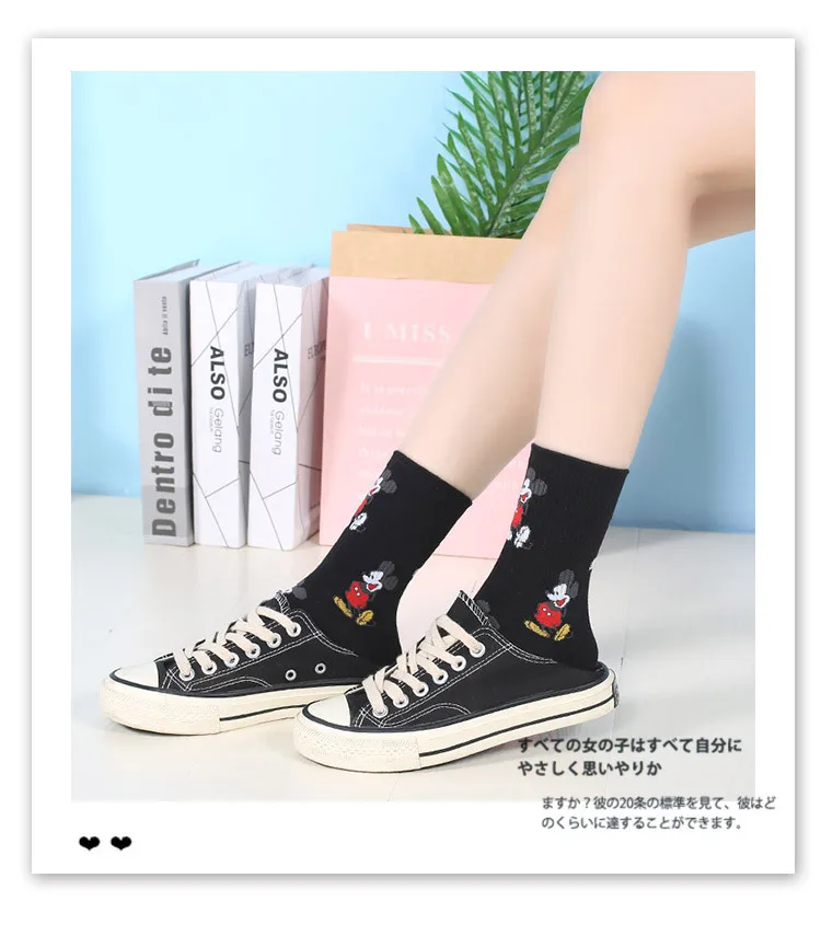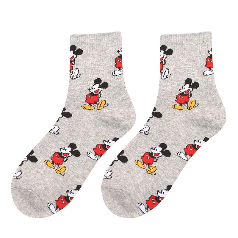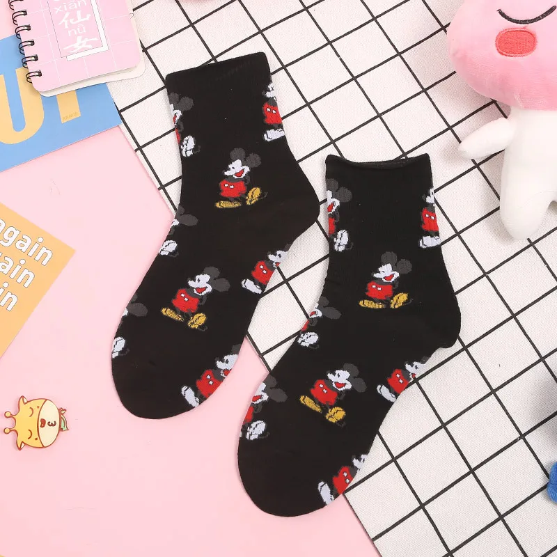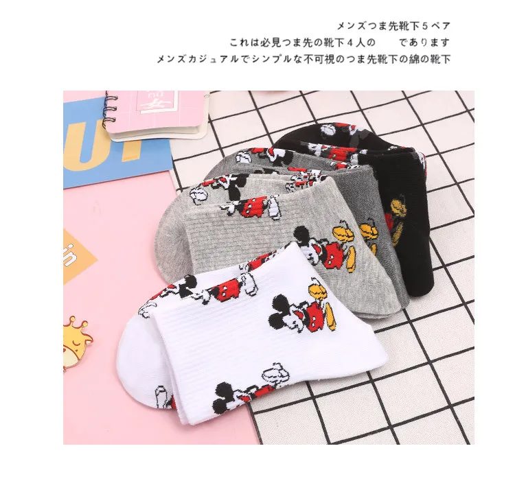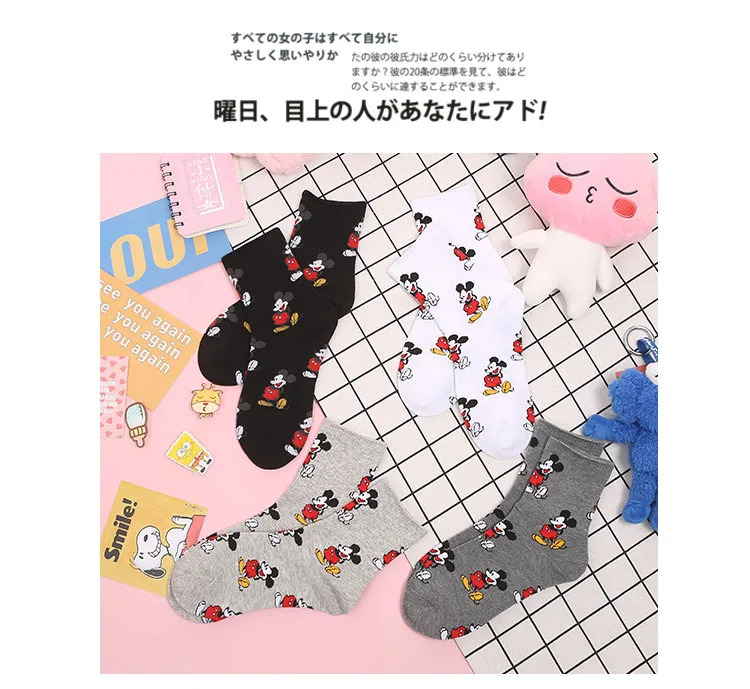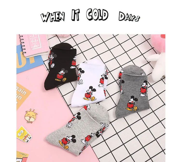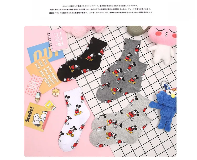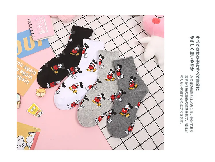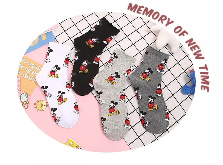Disney цельнокроеное платье; Пара; Женские дышащие хлопковые носки с Микки-Маусом узор серого и черного цветов с изображением животного из мультфильма, носки из дышащей ткани, четыре пары взрослых носков