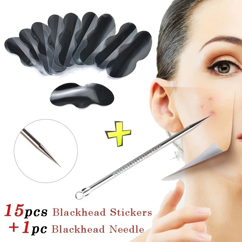 Маска для удаления черных точек, угри на носу, 1 шт., игла для удаления угрей, бамбуковый уголь, минеральные наклейки для удаления акне на носу, 15 шт.