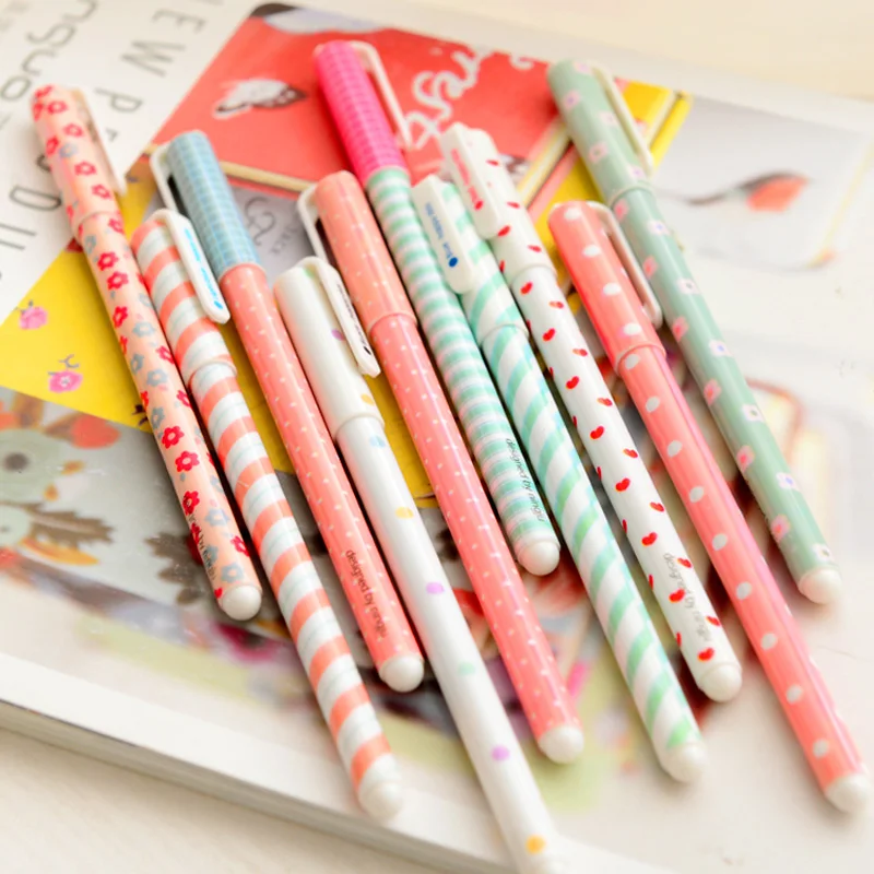 10 шт. радужной расцветки в полоску с цветочным рисунком набор гелевых ручек 0,5 мм 10 видов цветов чернилами Шариковая ручка для рисования канцелярские принадлежности для школьников, студентов поставки H6230