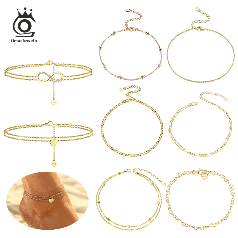 ORSA JEWELS бусины регулируемые ножные браслеты 100% 925 Серебро Золото Серебро Цвет для девушек ювелирные изделия на лодыжку подарок SA14