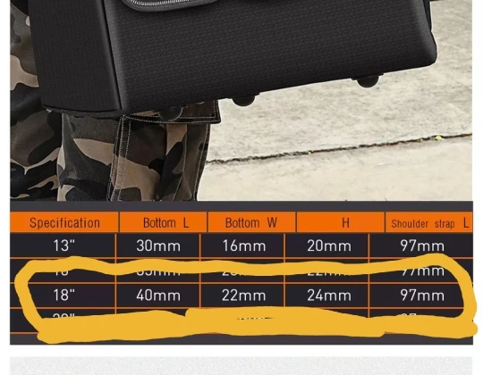 our description what is the size of the 13-inch PLASTIC BOTTOM, 40*22*24cm. Fact 29*19*20cm! dissatisfaction. Description of your marriage! The hammer and the sealant can't get in there! It would be nice to have a length of 40 cm. Ваше описание какой размер 13-дюймового ПЛАСТИКОВОГО ДНА, 40*22*24см. Факт 29*19*20см! Неудовлетворенность. Описание вашего брака! Молоток и герметик не могут попасть туда! Было бы неплохо иметь длину 40 см. Материалы хорошие, напрасно купил сумка маленькие размеры.