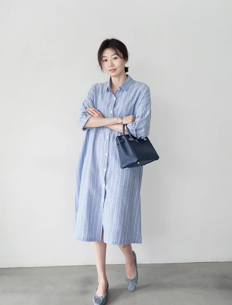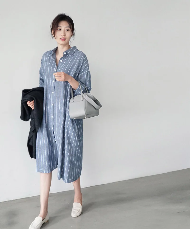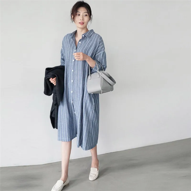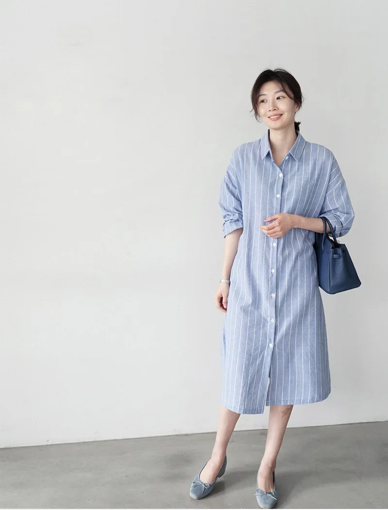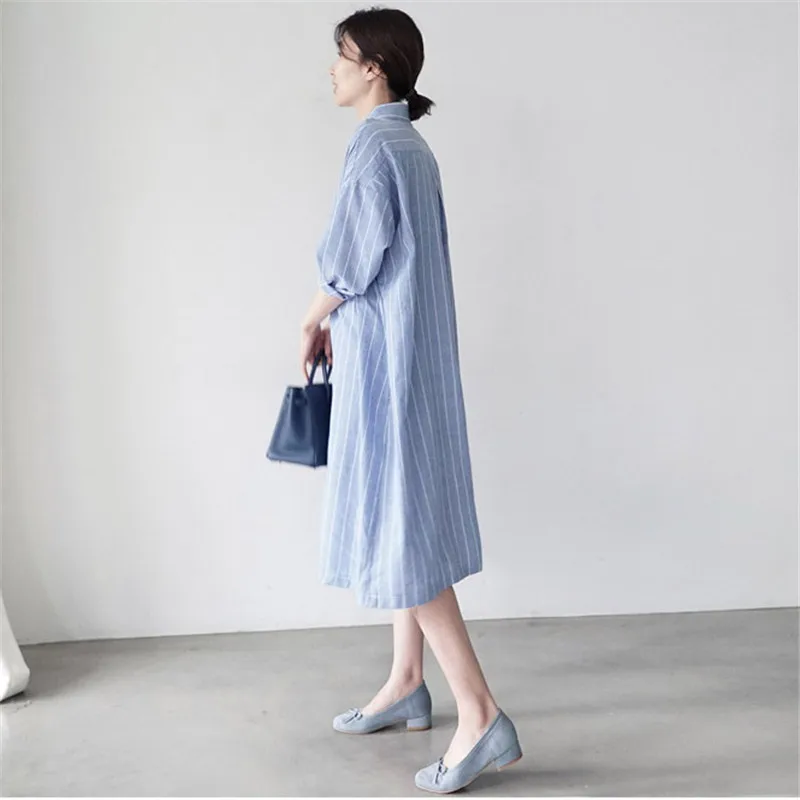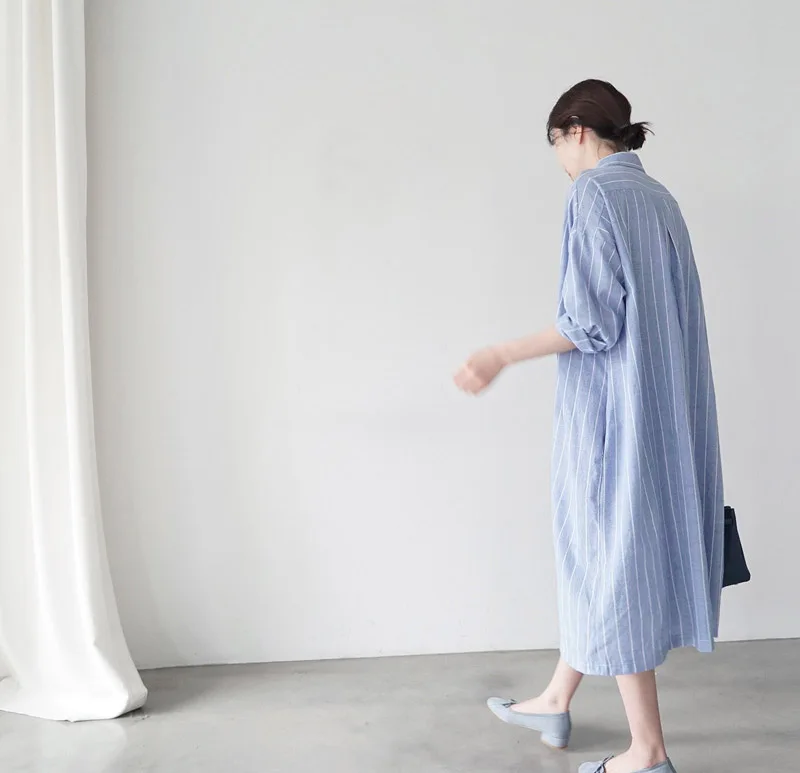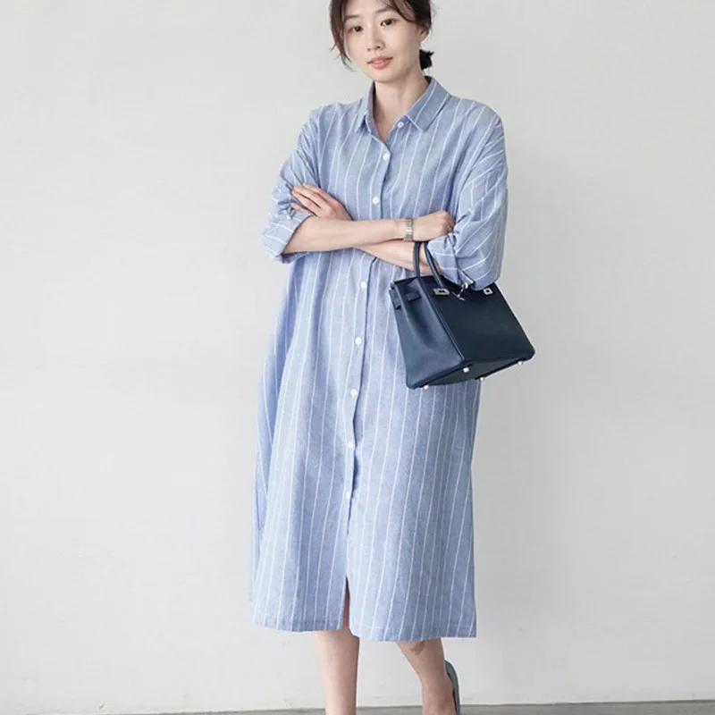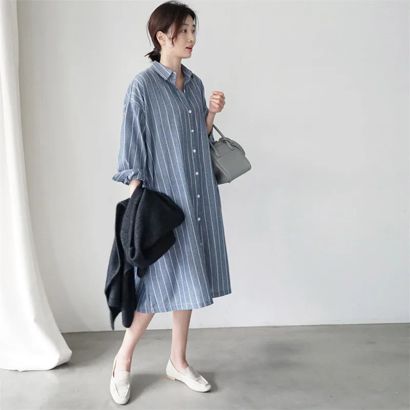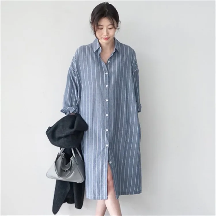 Женская длинная рубашка в полоску Johnature, Повседневная Свободная блузка в Корейском стиле, с отложным воротником, на пуговицах, летний сезон 2021