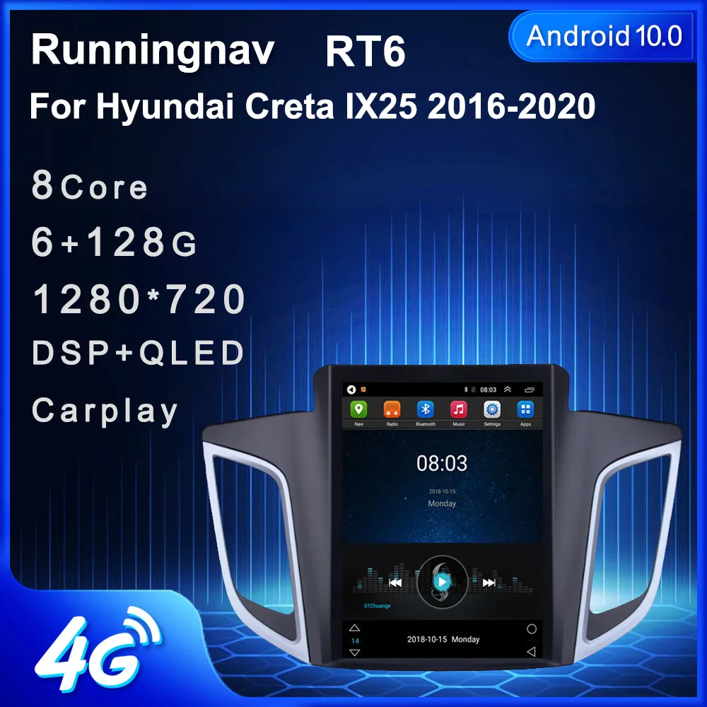 Автомобильный мультимедийный проигрыватель, 4G LTE, Android 10, для Hyundai Creta IX25, 2016, 2017, 2018-2020, тип Tesla, стерео, DVD, навигация, GPS, радио