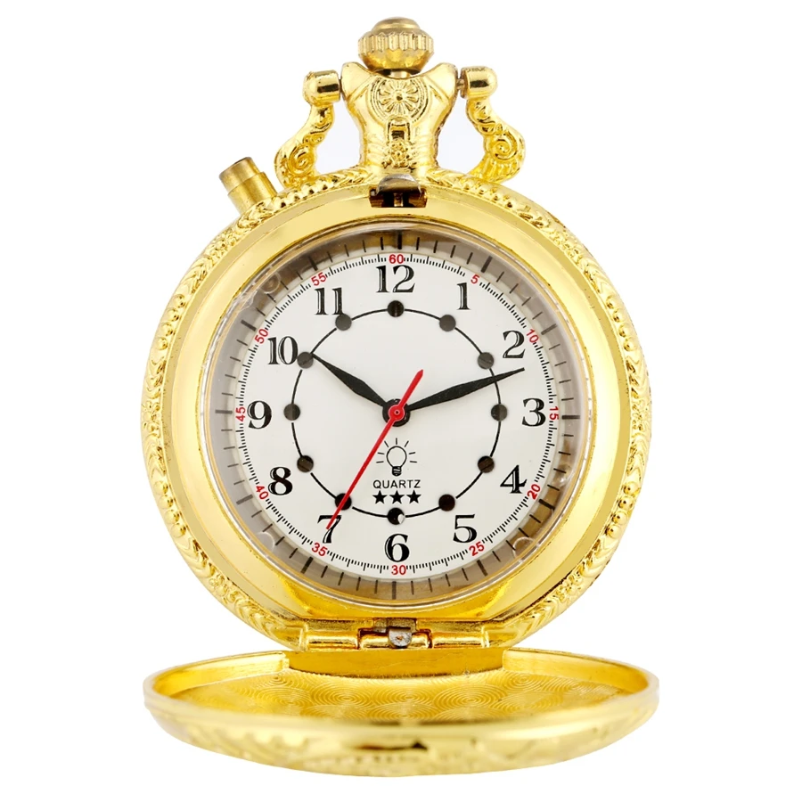 Светящийся светодиодный дисплей кварцевые карманные часы цепь Резные аналоговые мотоцикл фонарик светильник сы подарки для мужчин женщин