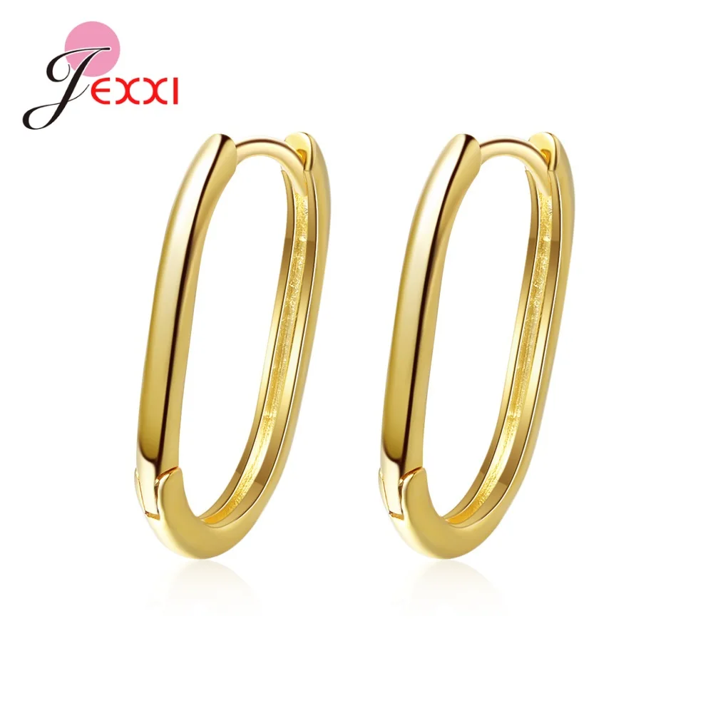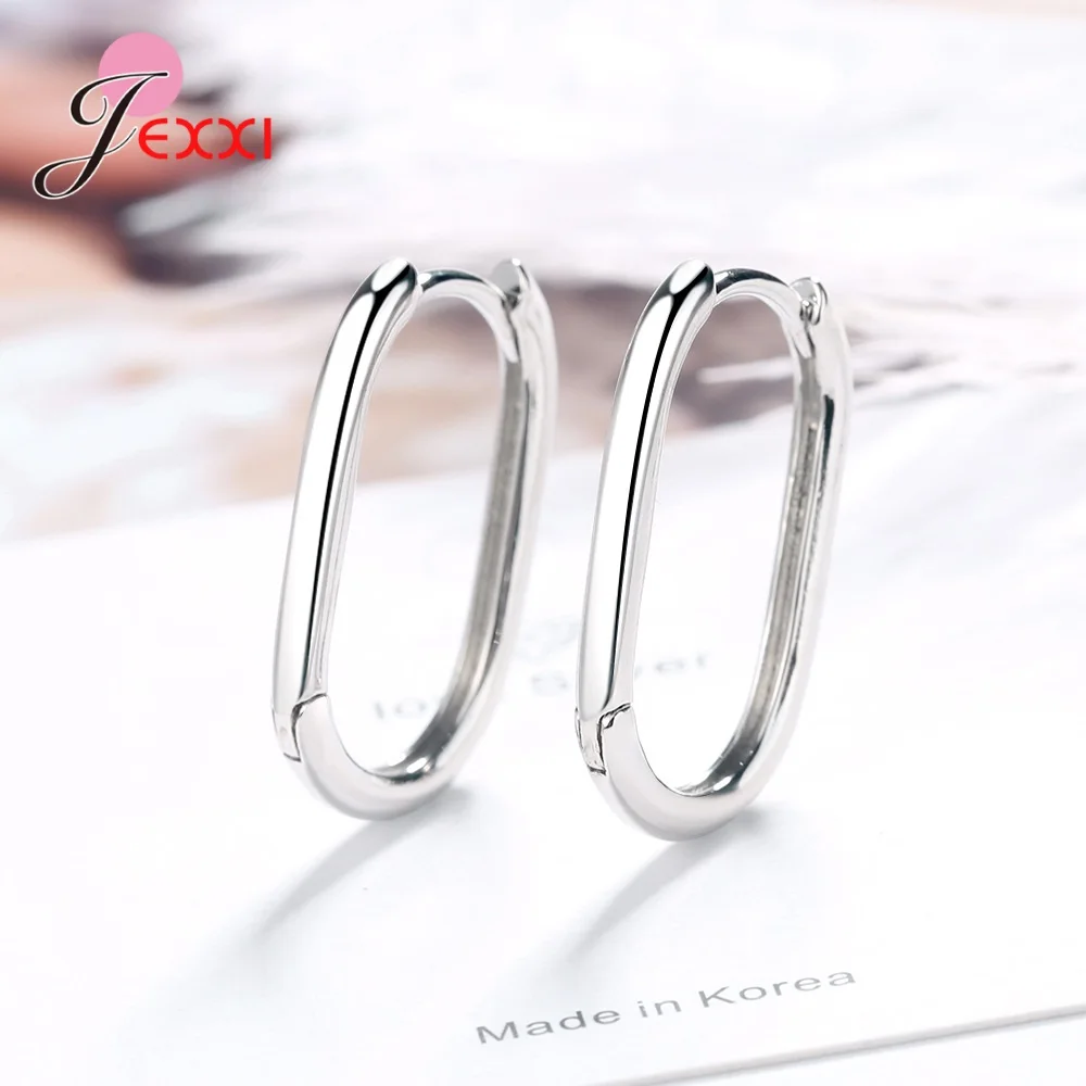 Серьги-кольца овальной формы с замок прямоугольной формы и застежкой женские, ювелирные украшения для ушей простого геометрического дизайна из стерлингового серебра 925 пробы в стиле панк