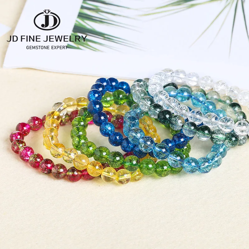 JD натуральный камень разноцветный трещины кварцевый кристалл круглые свободные бусины для изготовления ювелирных изделий фризнущий камень попкорн Diy браслет