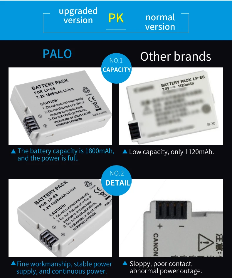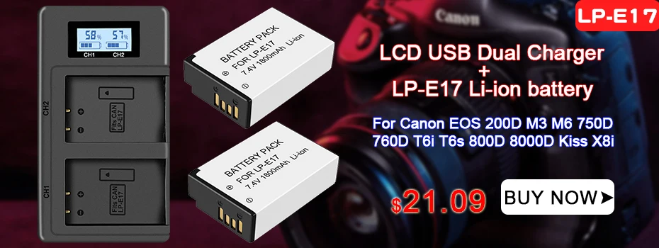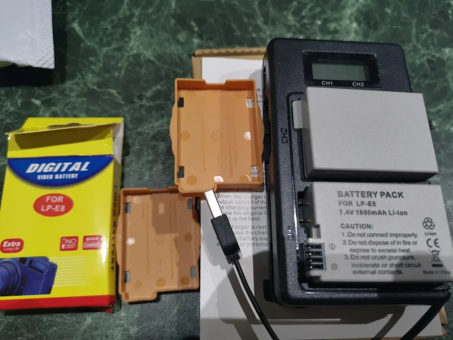 Название: зарядное устройство для цифровой камерыМодель: LP-E8Вход: 5 В/2,1 АВыход: 8,4 V 1000 мА * 1/1000 мА * 2Размеры: 12 см x 6,7 см x 2,5 смВес: 84,5 гХарактеристики продуктаВысокая емкостьСкрытый зарядный кабельЖК-экранАварийное грузовое сокровищеМногофункциональная зарядкаСовместимая модель:Для Canon EOS 550D / EOS 600D / EOS 650D / EOS 700D / X4 / X5 / X6i / X7i / T2i / T3i / T4i / T5i и т. д.