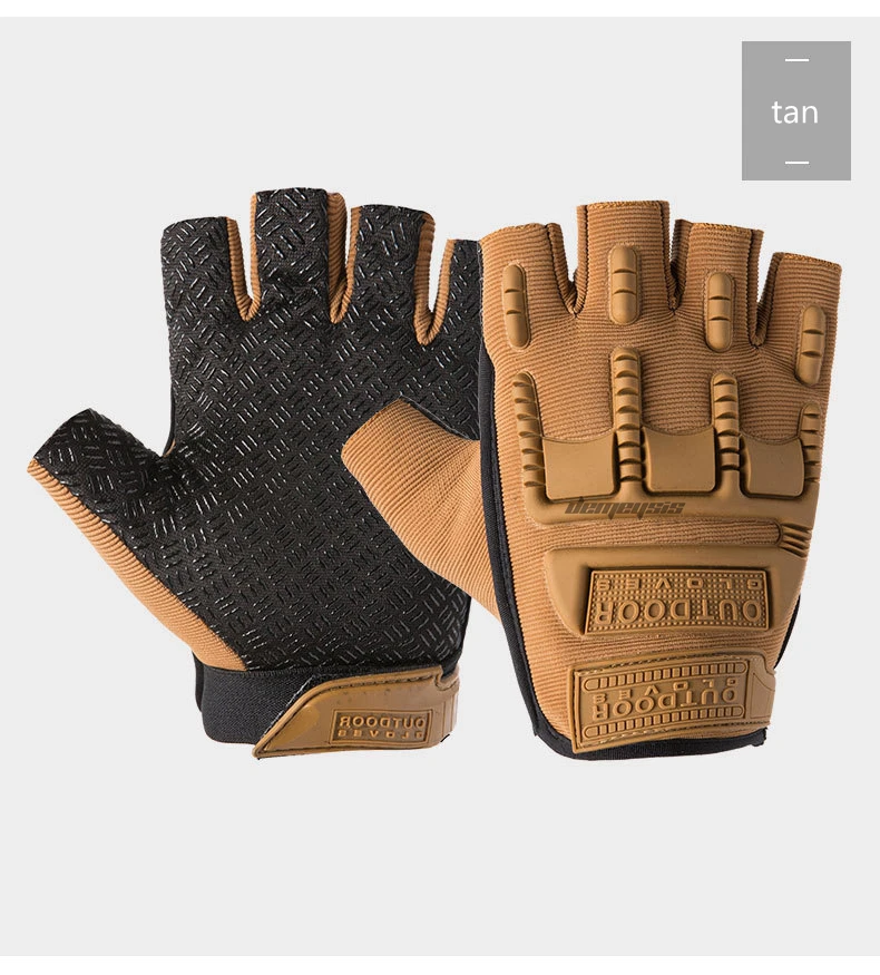 Характеристики: Наименование: Тактические перчатки с полупальцами Цвет: черный/зеленый/коричневый/Камуфляж Костюм для: армейского военного тактического боя, охоты на открытом воздухе, альпинизма, спорта. Особенности: 1. Мягкие резиновые защитные прокладки. 2. Нескользящие силиконовые пальмовые подушечки. 3. Регулируемый крюк и петля.
