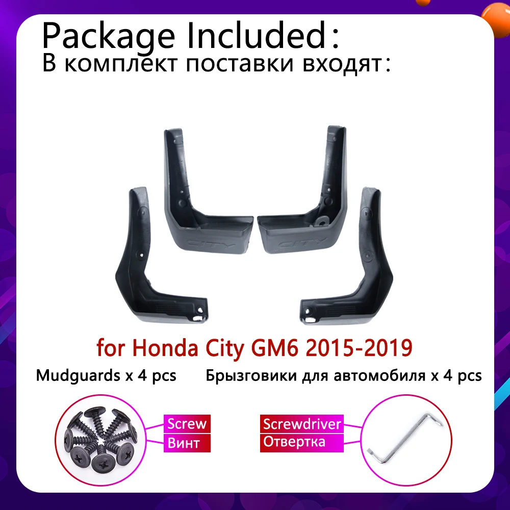 4 шт. спереди и сзади брызговик для Honda City GM6 2015 2016 2017 2...