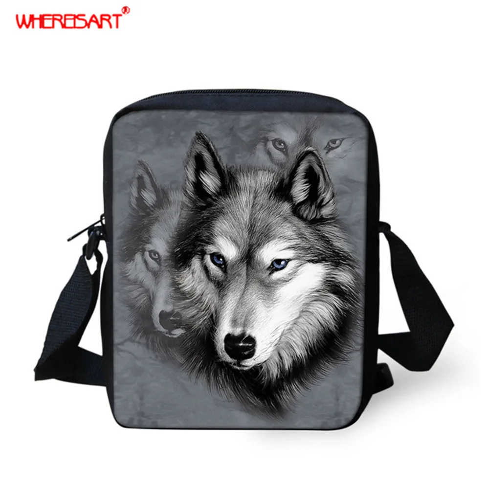 Женская сумка-мессенджер с 3D-принтом волка, в виде животного