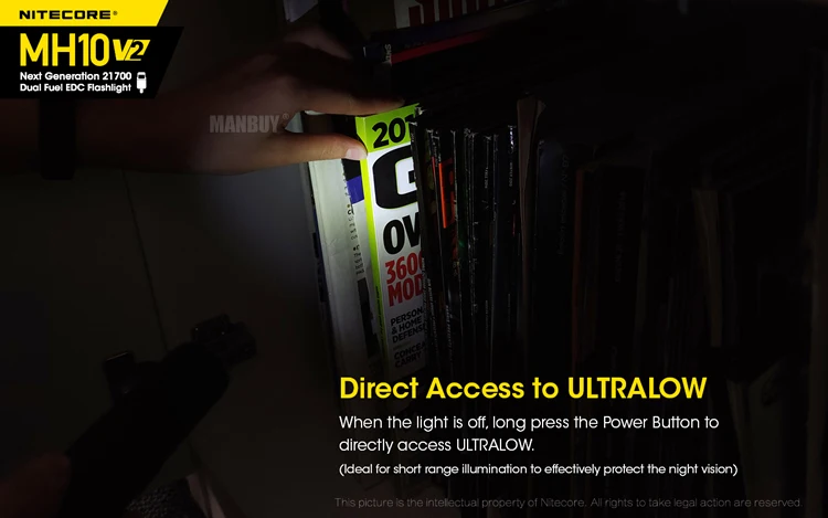 Тепло приветствуем вас Nitecore MH10 V2 Последнее дополнение к многозадачной гибридной линии! Улучшенный в прошлом поколение, V2 теперь имеет 21700 батарею, плюс бонус 18650/CR123A журнал батареи для большей совместимости, больше люменов и впечатляющее время работы. С интенсивным выходом 1200 люмен и 202 метром, MH10 V2 Отлично подходит как ваш полный рабочий день EDC, кемпинг, или поисково-спасательный светильник. Буду гулять весь день и ночь? В MH10 V2 Покрыл ли вы. С 1500 часа на низких оборотах, этот светильник будет идти в ногу с вами, и ваш график. Односторонний переключатель делает активацию одной рукой супер легкой и дает доступ ко всем выходам. Кроме того, не забудьте о встроенной функции памяти и прямом доступе к Ultralow. Эта функция дает вам легкий доступ к некоторым из наиболее используемых режимов в повседневной жизни, что делает этот светильник идеальным дополнением к EDC. Веб-дизайн от Manbuy.