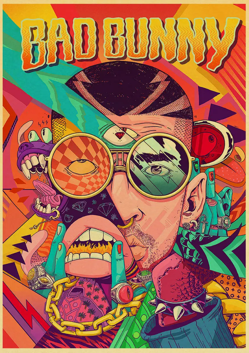 Ретро-постер с изображением музыкального художника плохого кролика, картина стене плакат, Современный художественный постер для детской комнатыбарадомашнего декора
