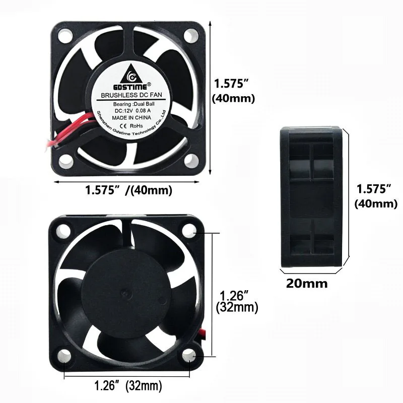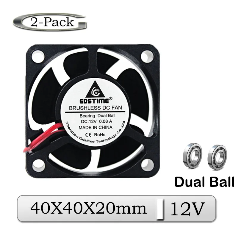 Gdstime DC 12 В 40x40x20 мм Queiter 2PIN двойной шарикоподшипник Бесщеточный вентилятор охлаждения постоянного тока