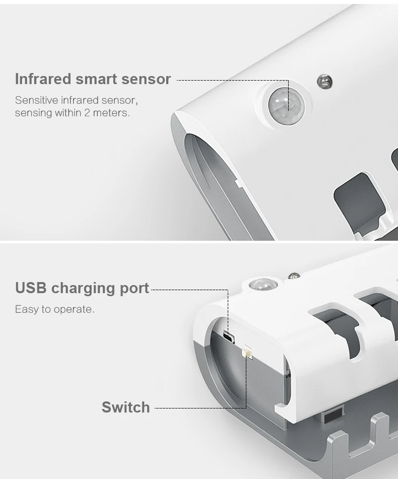 Инфракрасный умный светильник с датчиком управления, 2 м, умный светильник с ИК-датчиком и солнечной батареей для дома, стерилизатор зубной щетки с зарядкой от USB