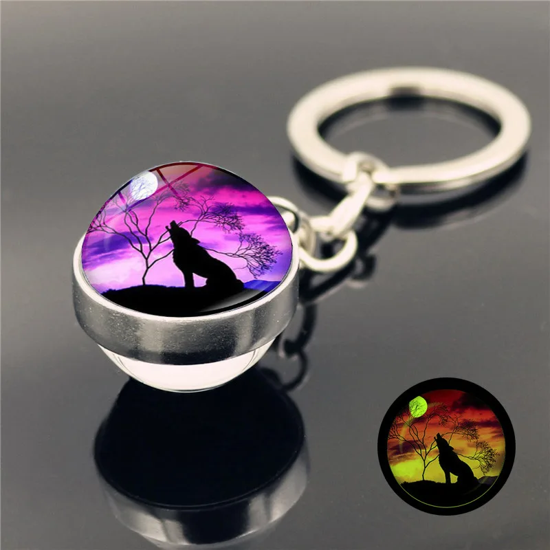 Брелок со светящимся воющим волком и луной, двухсторонний стеклянны...