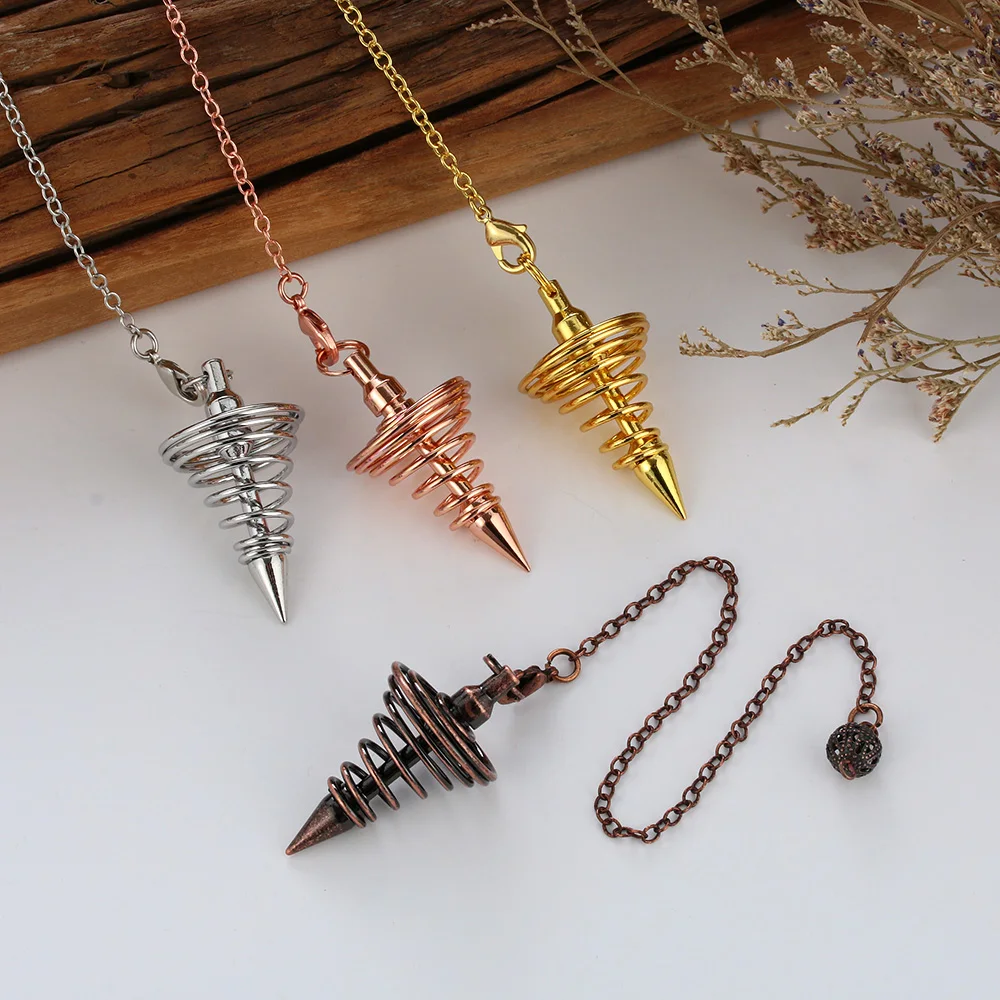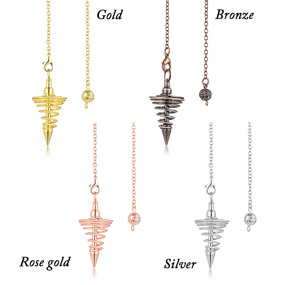 Металлические маятниковые маятники радиестезия маятники для приданого Спиральный Конус античный золотой серебряный цвет исцеляющая Пирамида маятник рейки