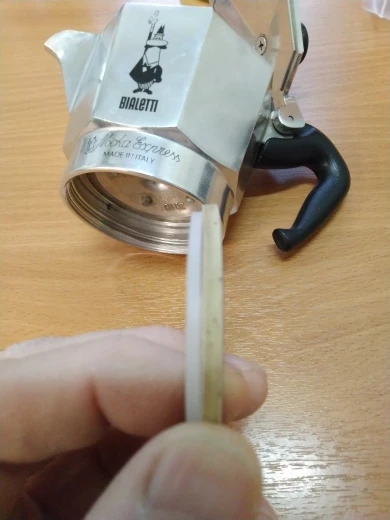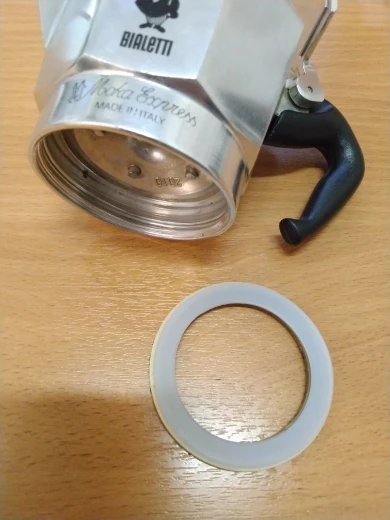 Для Moka Express подходит довольно условно. В сравнении с оригинальной прокладкой сильно отличается как по толщине, так и по внешнему диаметру. Но в целом, при готовке кофе, протечек по резьбе не наблюдается, свою функцию прокладка выполняет, хотя и имеется смещение корпусов верхнего и нижнего по граням (на функционал не влияет).