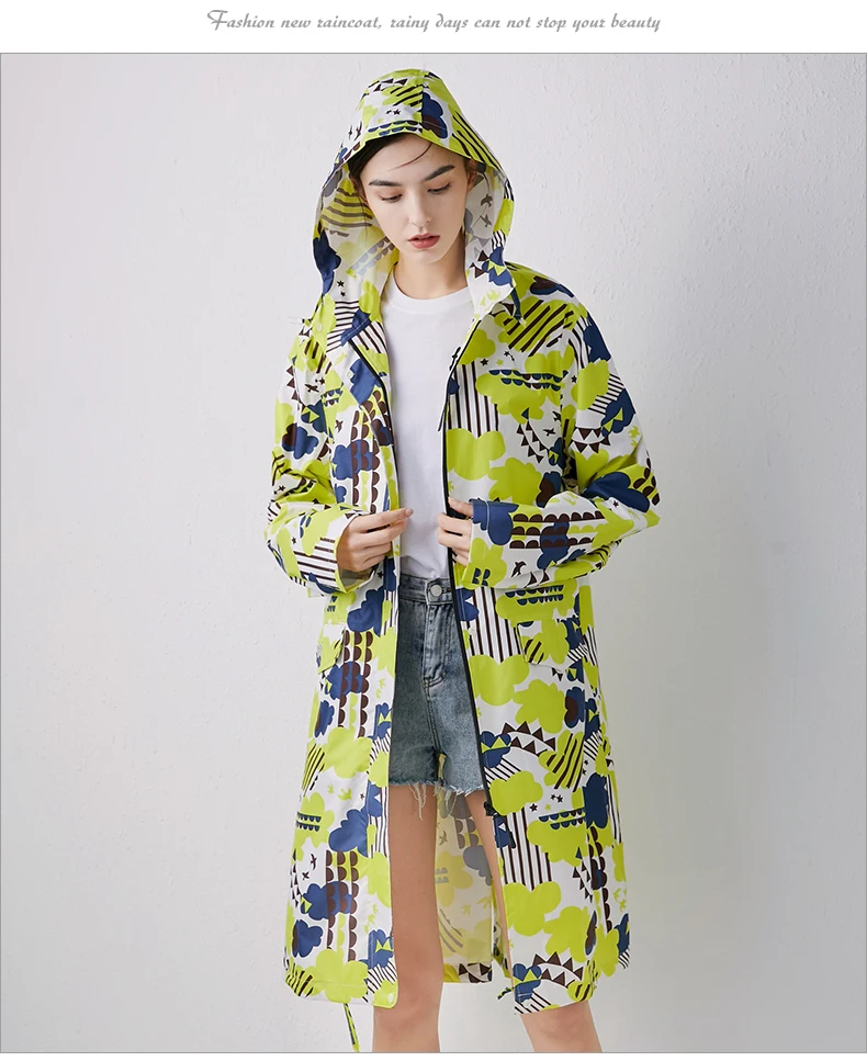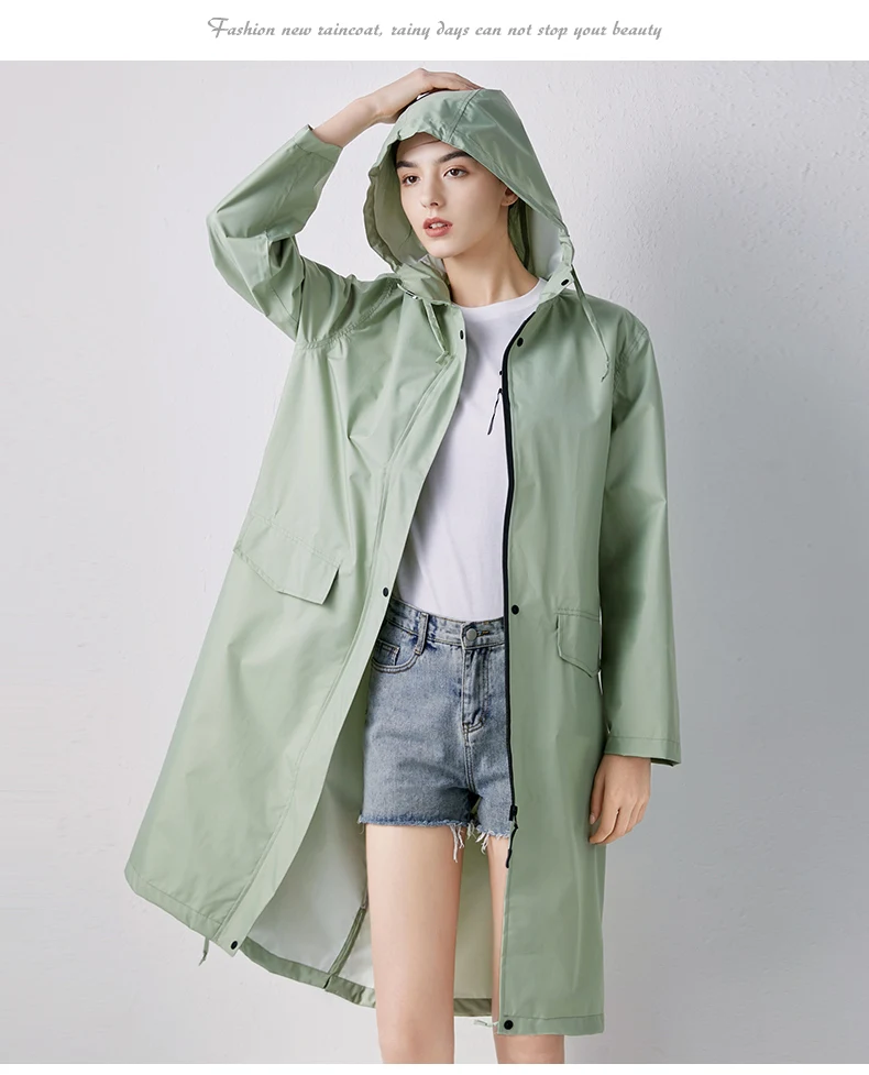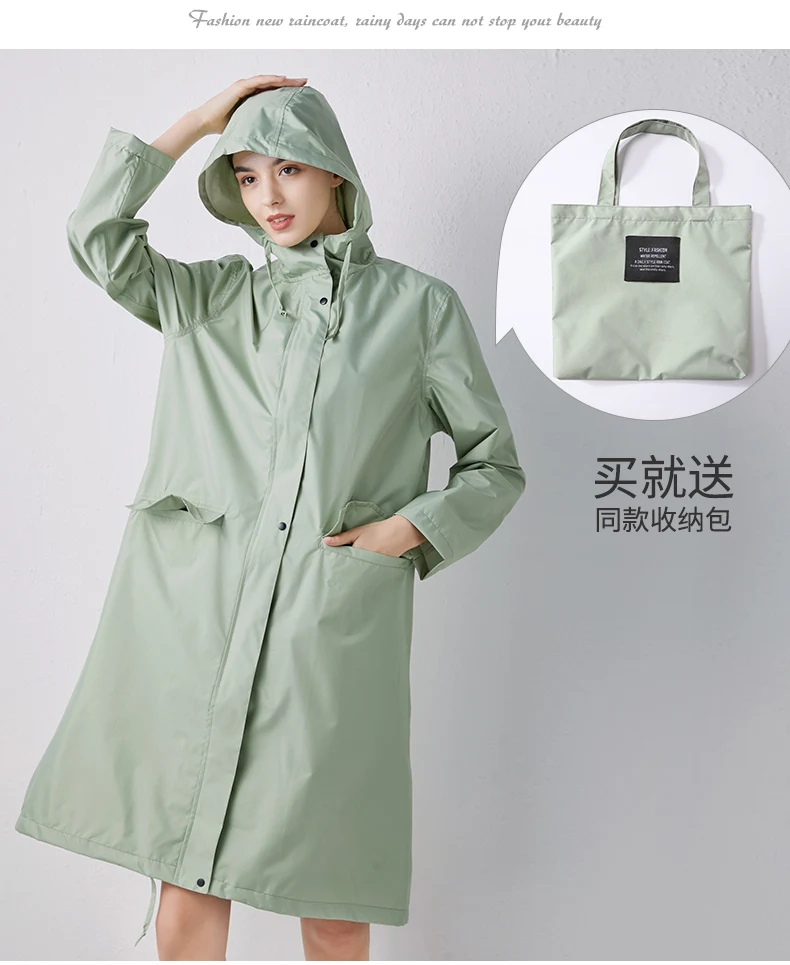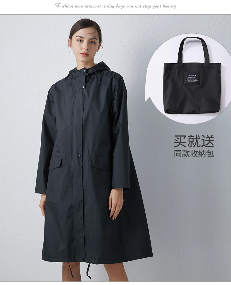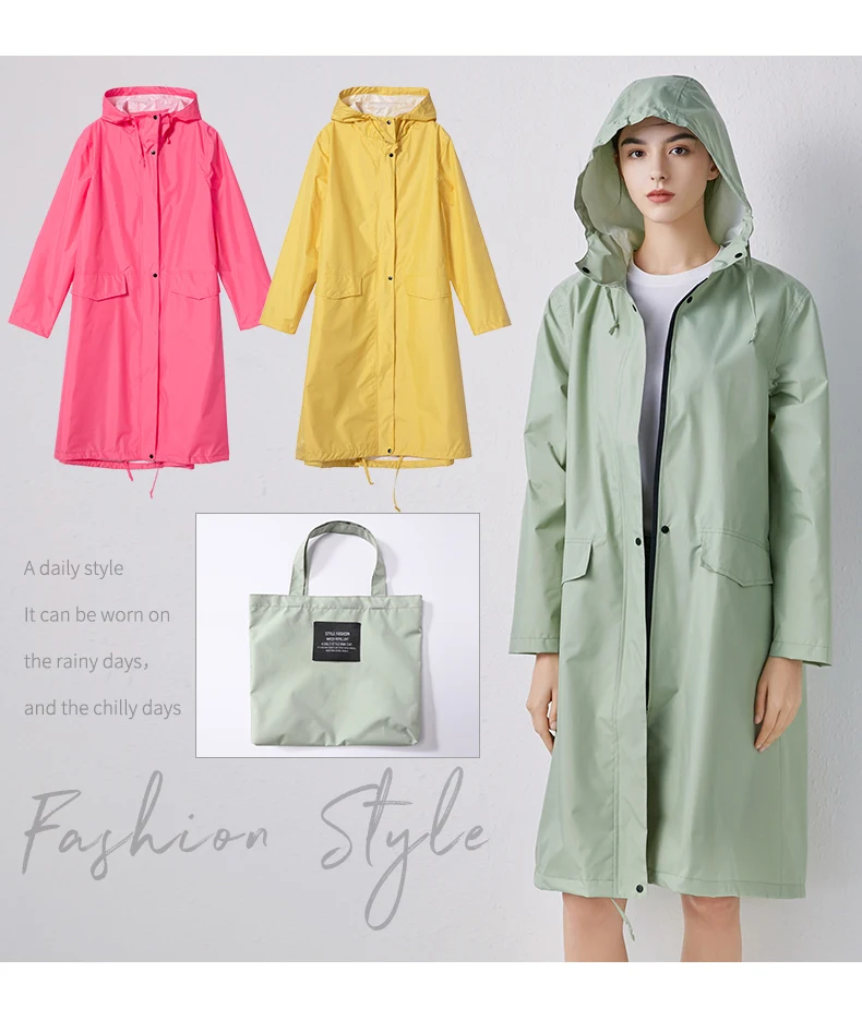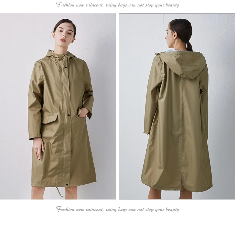 Женский новый стильный длинный дождевик, водонепроницаемый дождевик с капюшоном