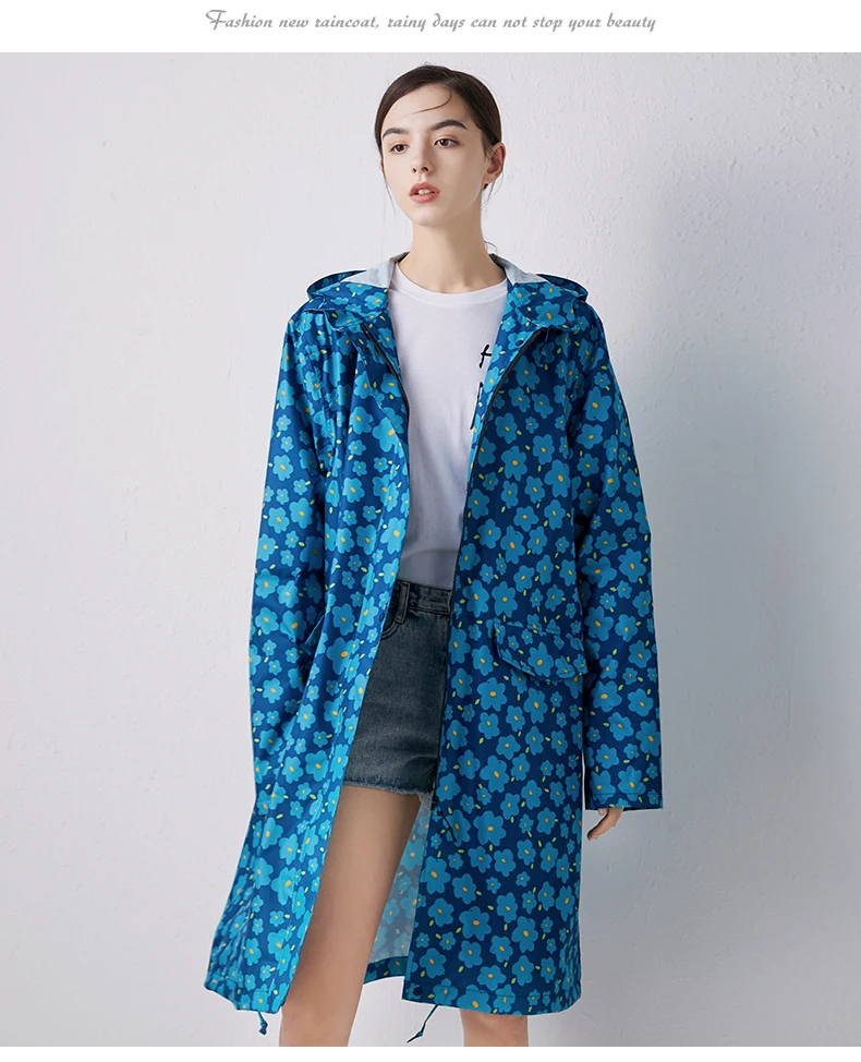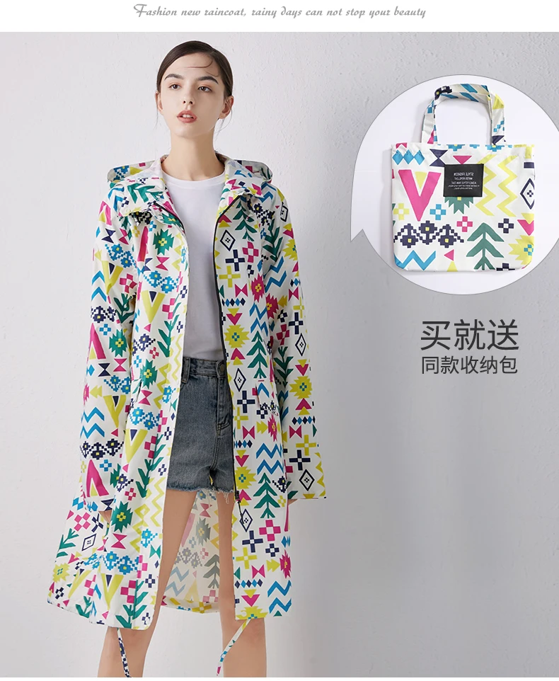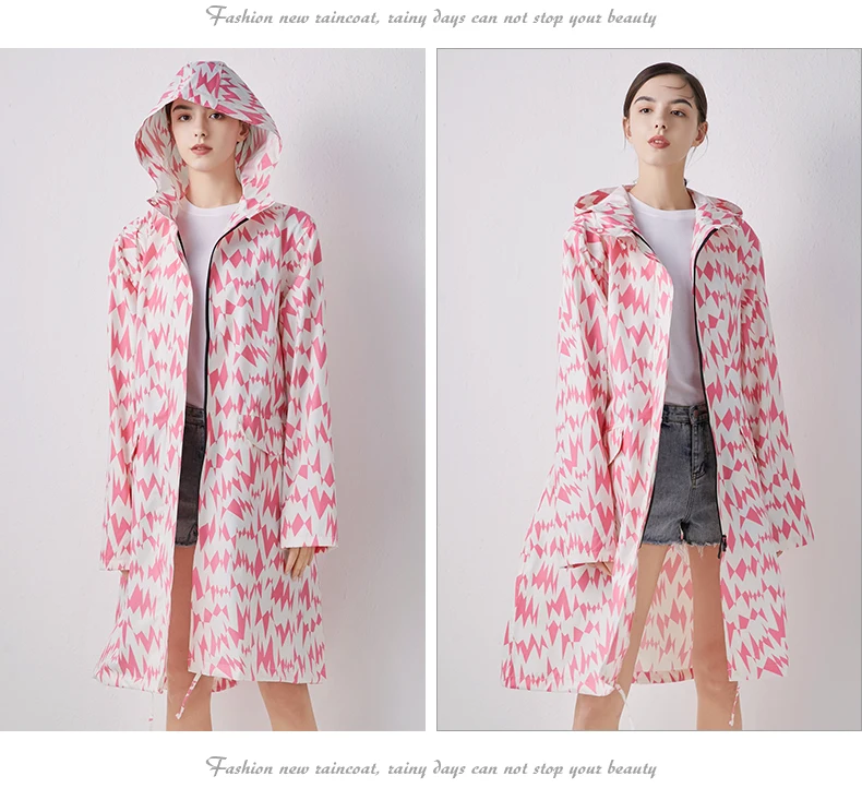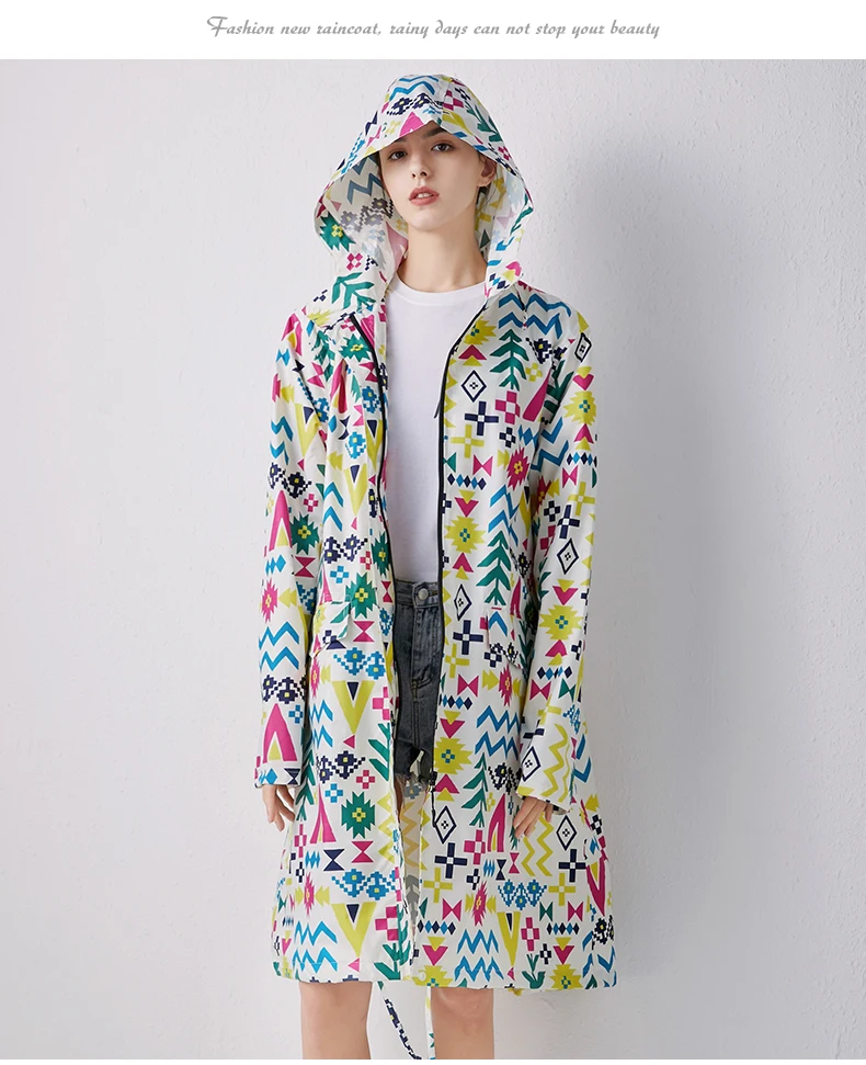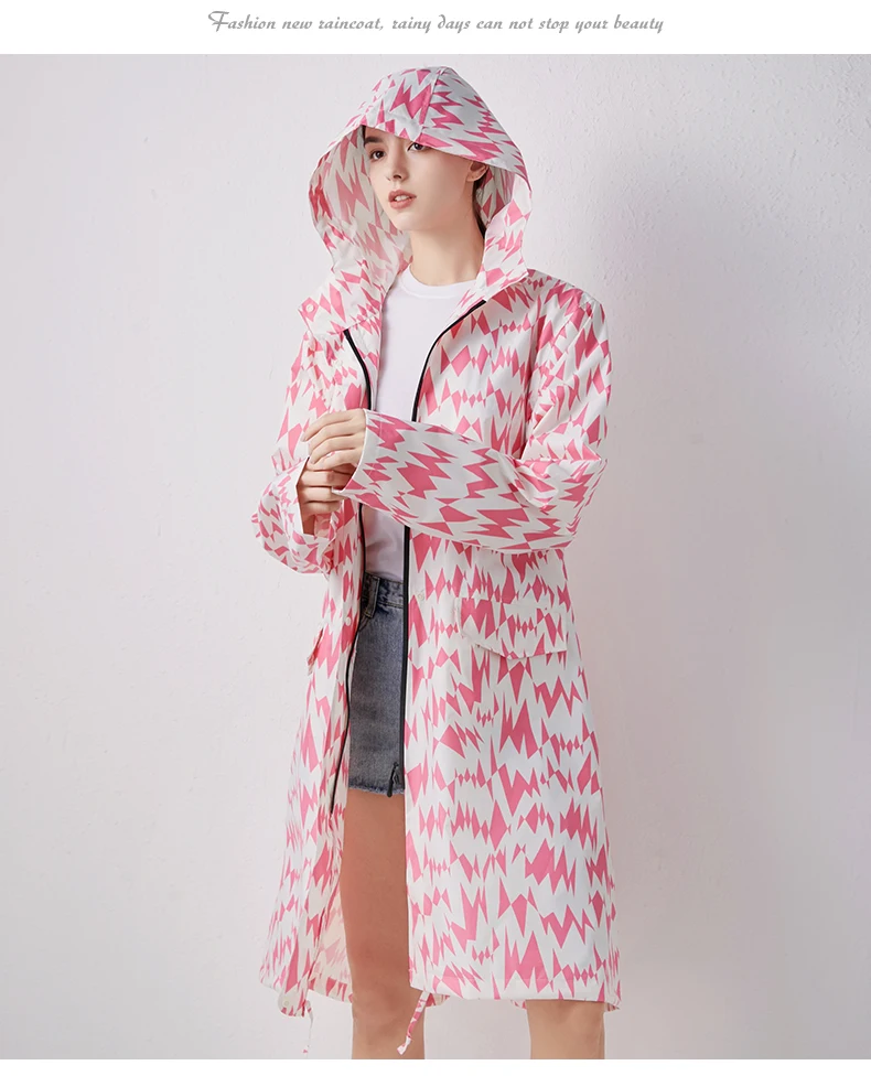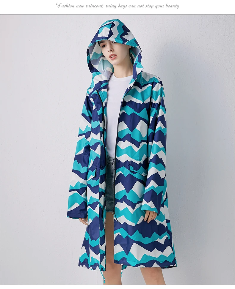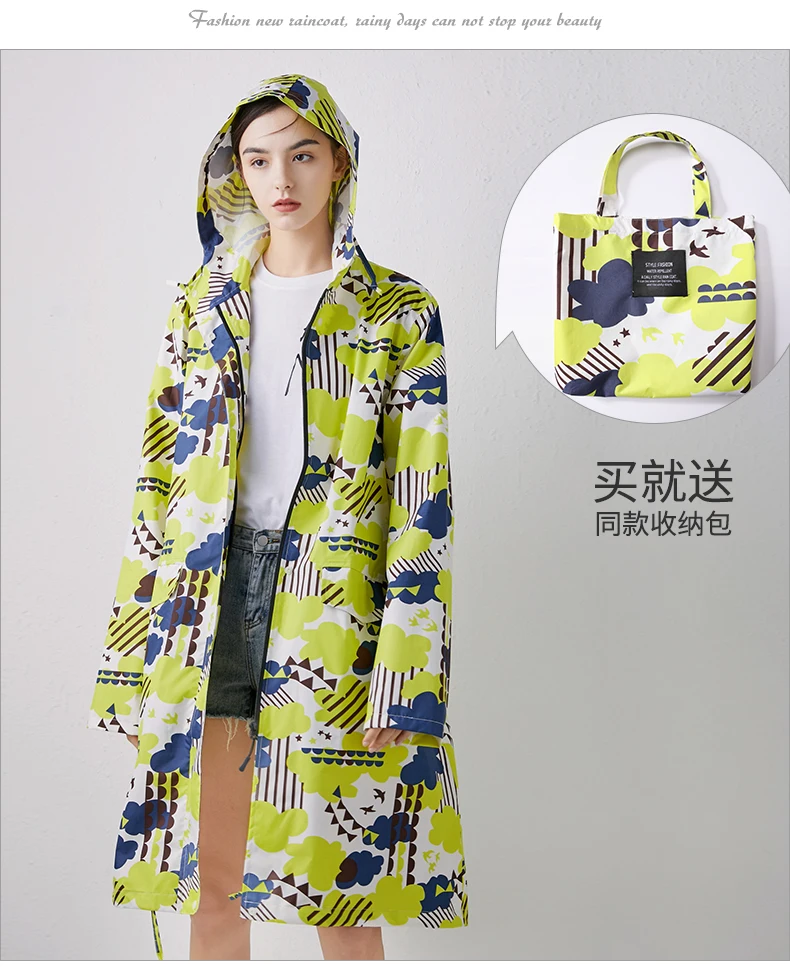 Женский новый стильный длинный дождевик, водонепроницаемый дождевик с капюшоном