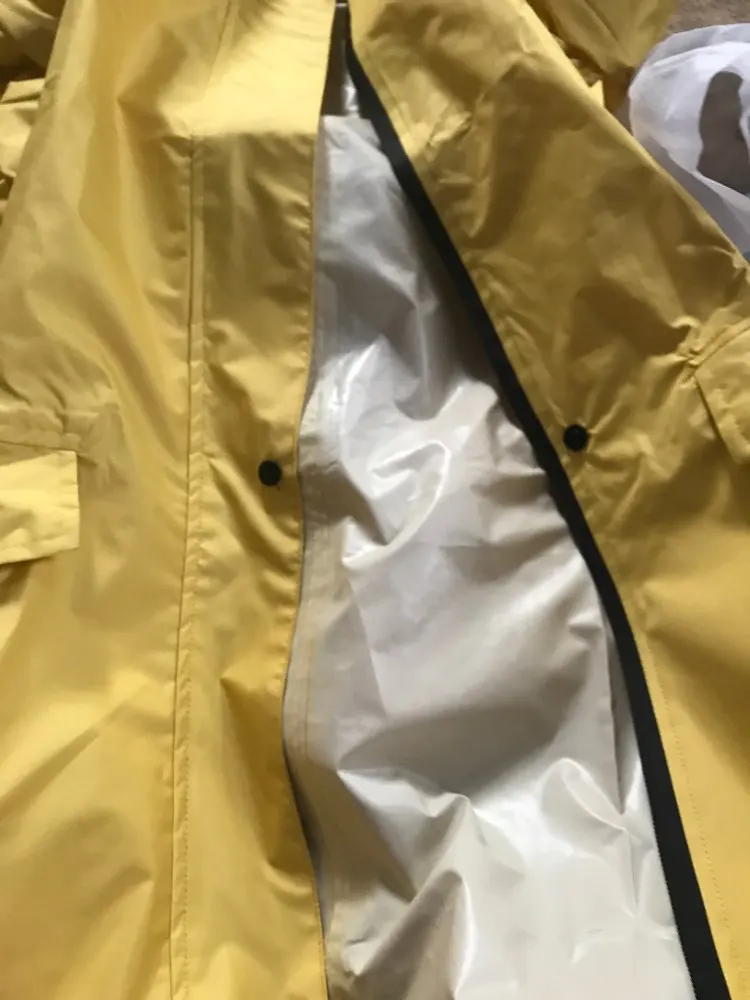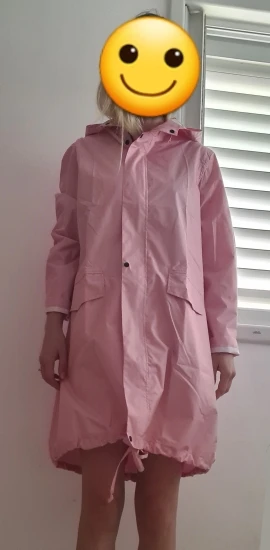 Идеально! Как на фото. Все еще не протестирован под дождем, но материал выглядит качественным. Есть застежка-молния и пуговицы. Кроме того, цвет в пастельно-желтом очень красивый