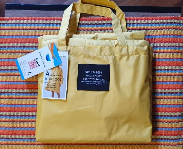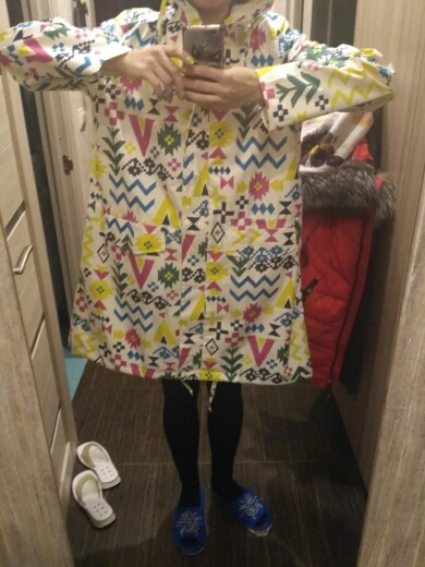 Заказала 29.12, а 13.01 посылка уже была на почте (Санкт-Петербург), трек отслеживался. Плащ специально заказывала побольше, чтобы можно было надеть поверх основной куртки. Все качественно, рисунок как в описании, сам плащ упакован в мини сумку из той же ткани. В деле получится опробовать только весной.