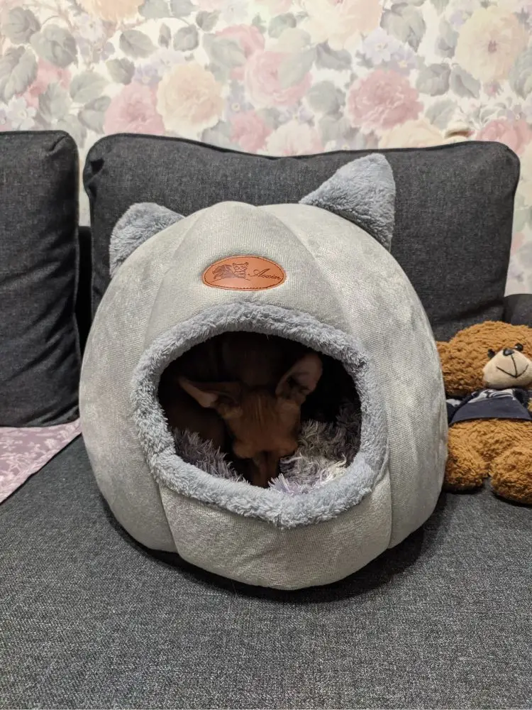 Хороший домик, только моя кошка ни за что туда не хочет идти , пришлось отдать дочери у не сфинкс ,кошечка оценила ,очень ей понравилось
