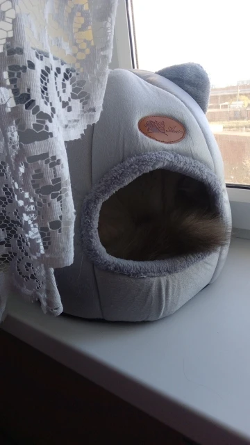 Продавец отличный. Заказала 11.11 и спустя около полу часа продавец отправил заказ. Это мой рекорд. Сам домик мягкий, без запаха, его приятного трогать. Моя котейка сразу же оценила. Брала большой. Думала и для второго кота пойдёт, но как оказалась он слишком толстый, помещается конечно, но с трудом, а для моей кошечки, которая на фото, подходит идеально, ей 9 месяцев. Подстилка мягкая, можно легко стирать. При необходимости можно превратить в простой лежак. Продавца и данный товар рекомендую, всё супер ❤️