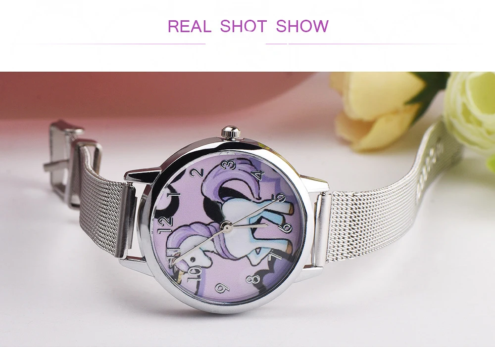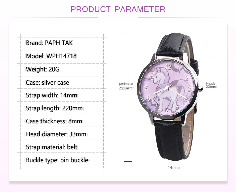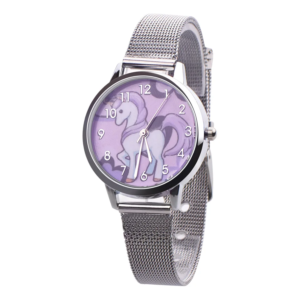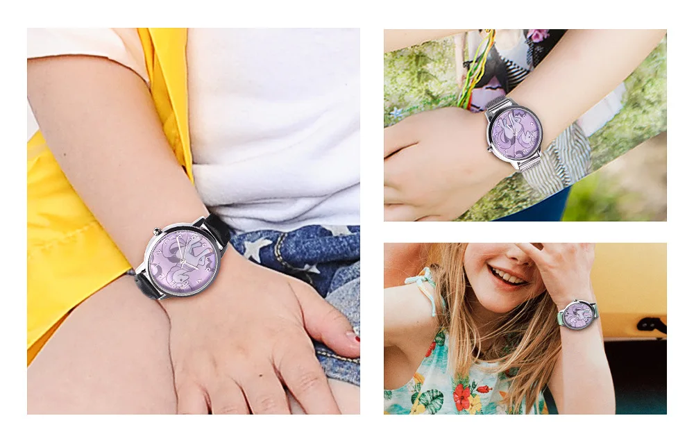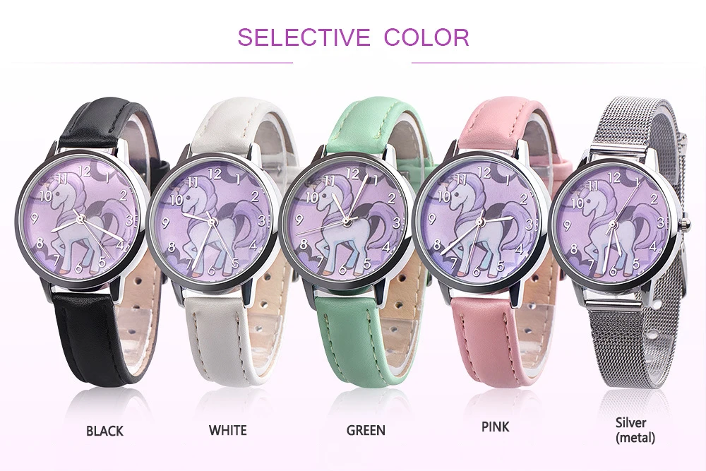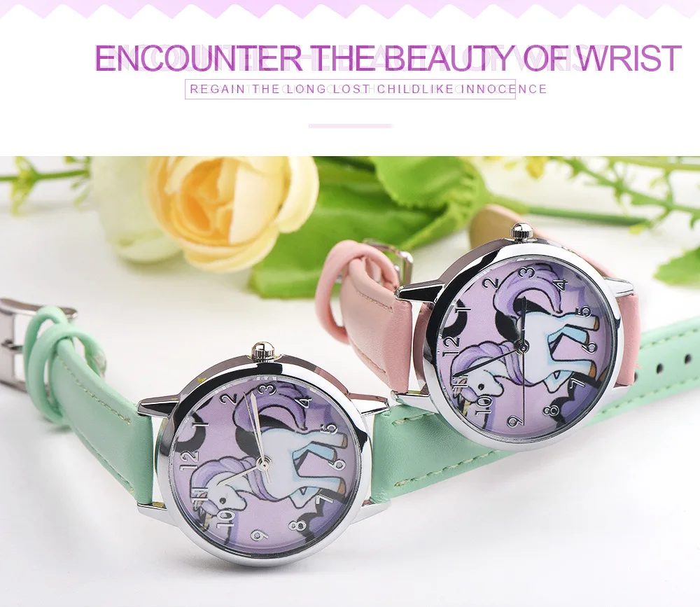 Часы UTHAI CQ17 Детские Кварцевые для девочек, разноцветные наручные часы с мультяшным рисунком лошади, зверя, с кожаным ремешком