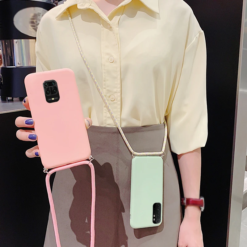 Чехол с ремешком на шею из жидкого силикона для Xiaomi Mi 11 Lite 5G 10T 11T Poco X3 GT M3 M4 F3 Redmi Note 10 9 9s 8 Pro 9T 10S 9A