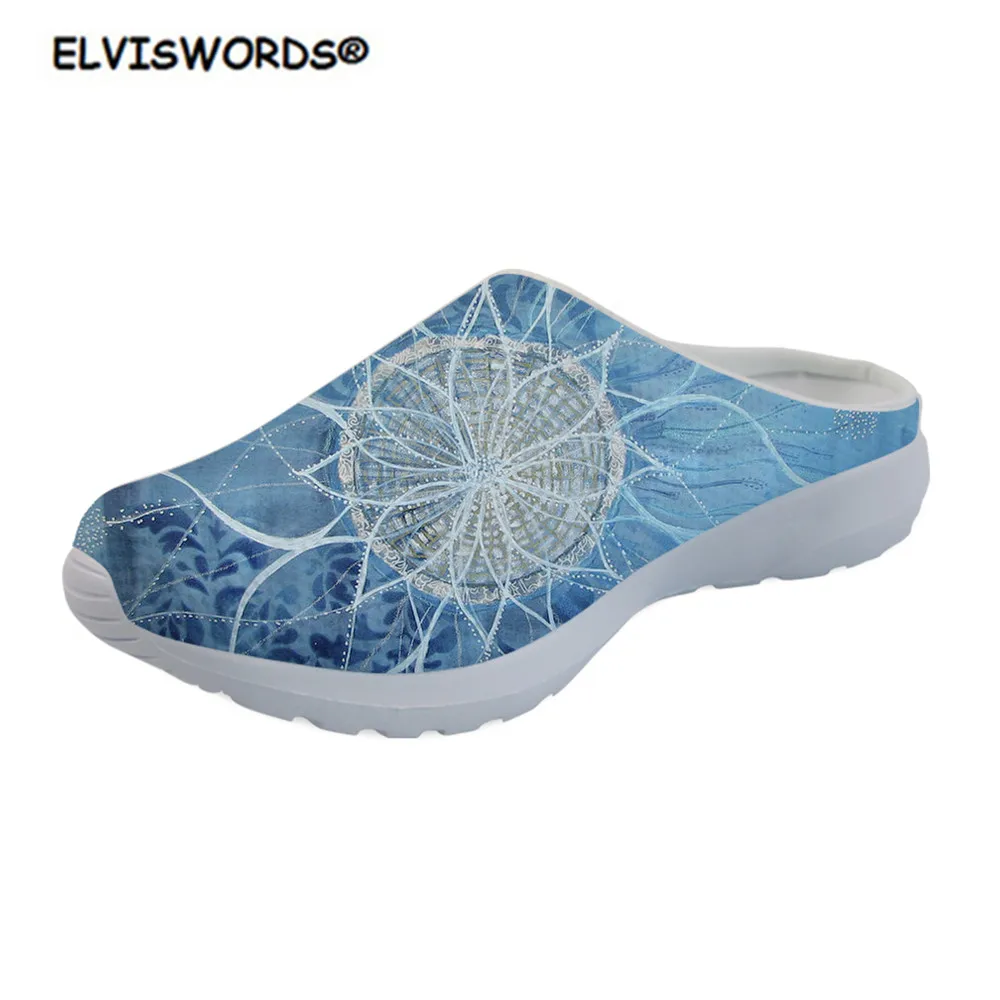 Женские сандалии ELVISWORDS с индийской мандалой и цветочным узором, повседневные сетчатые домашние шлепанцы без застежек, сисветильник, сандалии для женщин