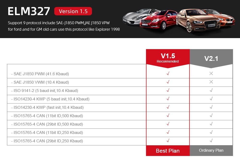 FeatureSupports 7 Kinds of OBD2 Protocols
