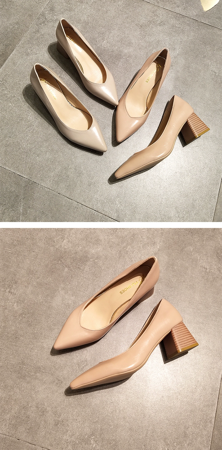 Женские туфли на среднем каблуке 5 см, с острым носком