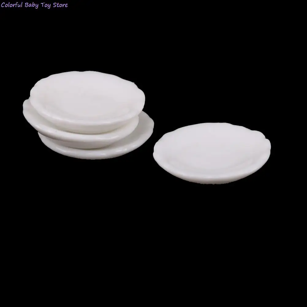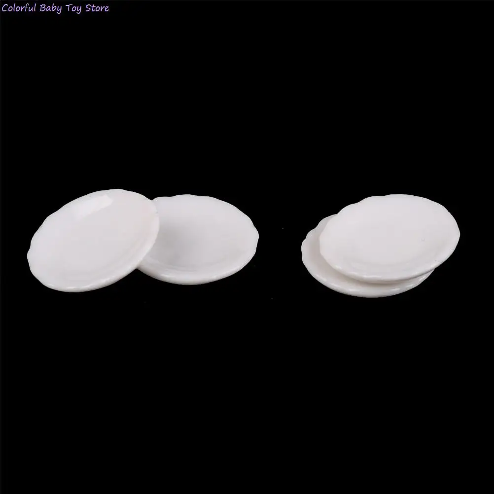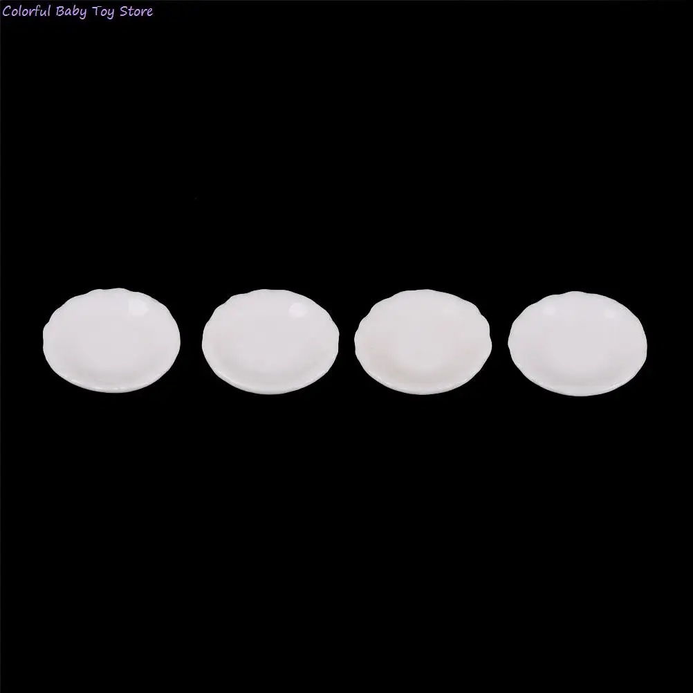 4 шт., 1:12, белая круглая тарелка, посуда, посуда, кукольный домик, мебель, миниатюры, кухонная игрушка, подарок для детей