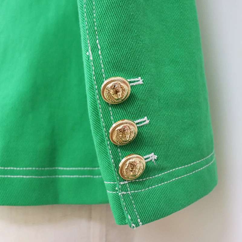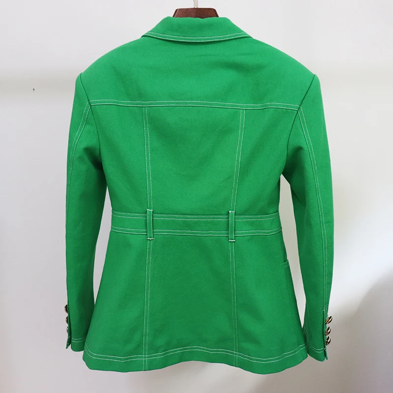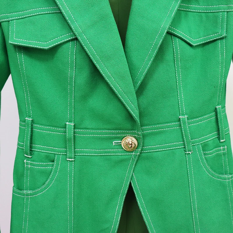 Женский Джинсовый блейзер на пуговицах, подиумный стильный блейзер с дополнительными плечами и прострочкой, 2021