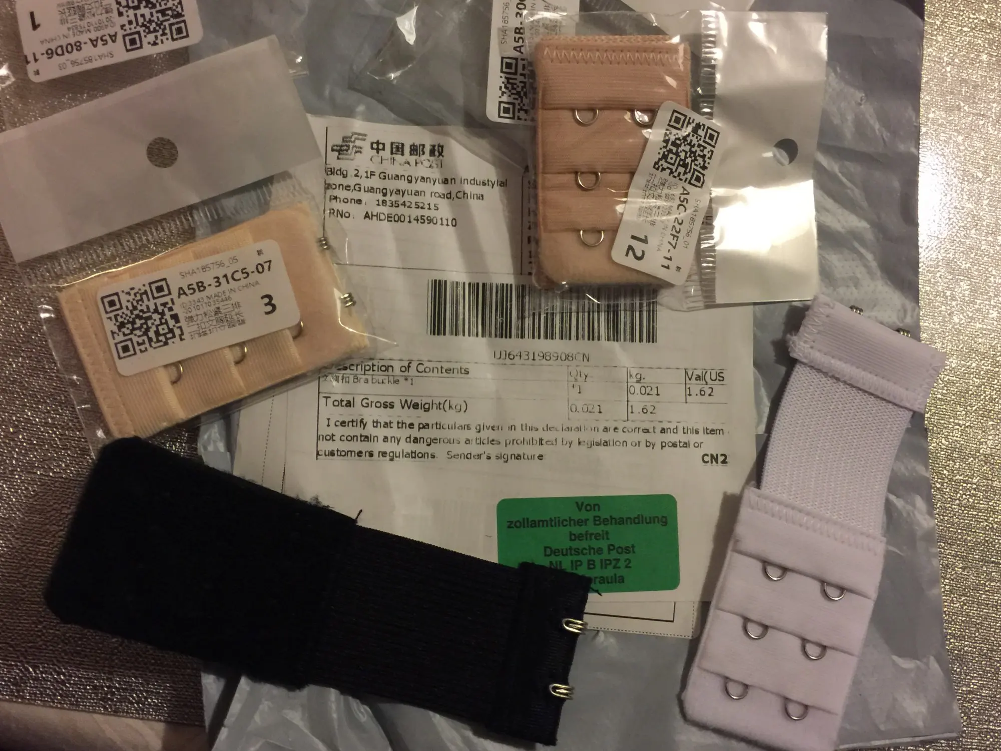 Положили пакетик в почтовый ящик. Пришёл чуть меньше, чем за месяц до Санкт-Петербурга. Хороший удлинитель для бюстгальтера. Заказывала чёрный и белый. Держится хорошо, помогает решить проблему узкого в обхвате лифа.