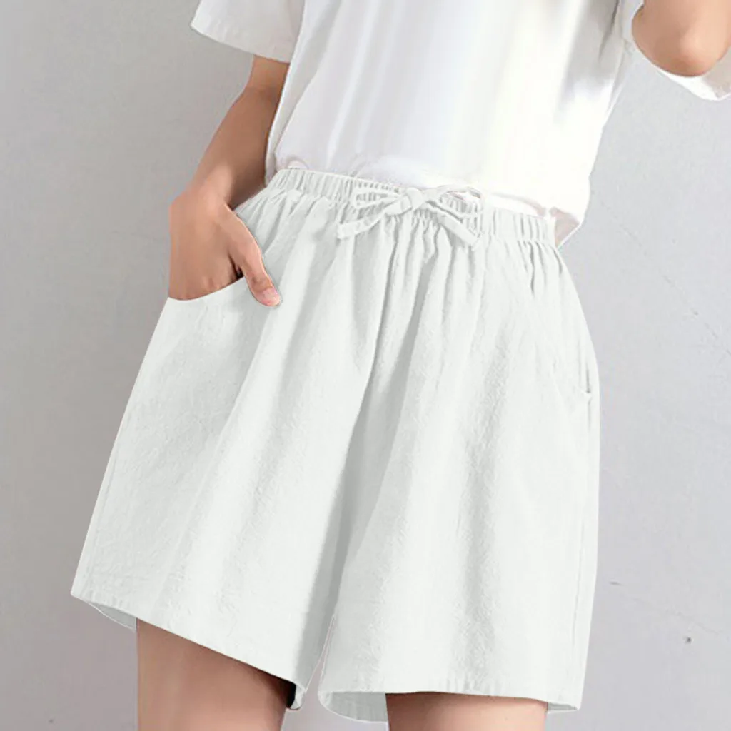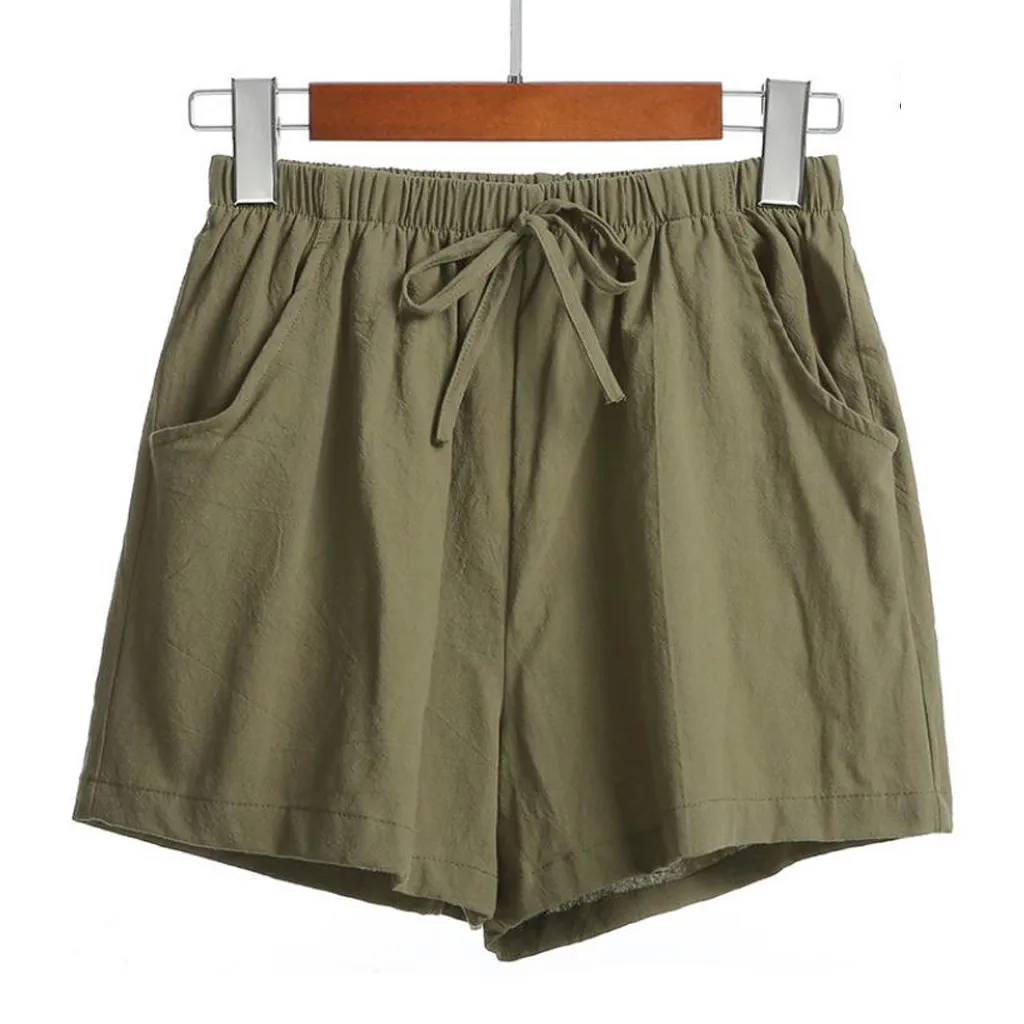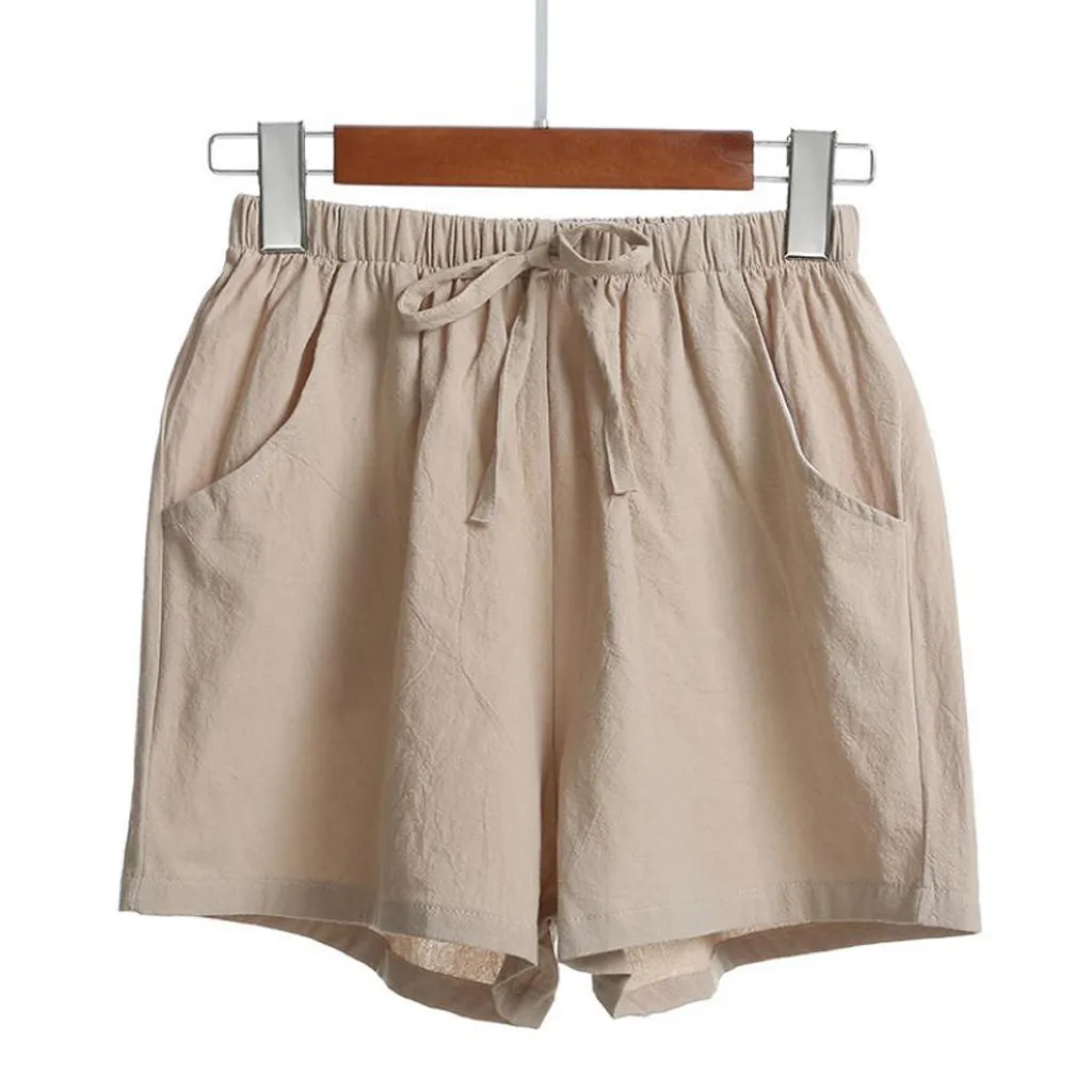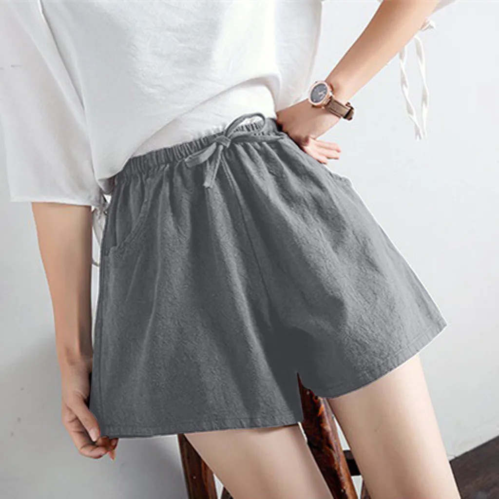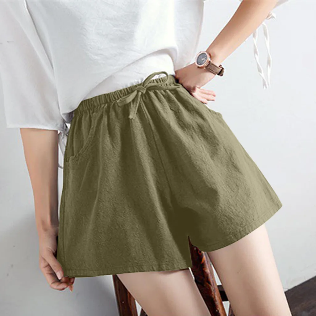 Женские шорты с высокой талией, льняные свободные повседневные тонкие широкие льняные шорты