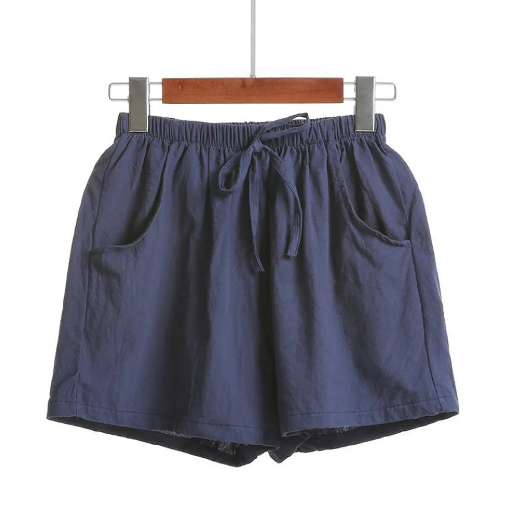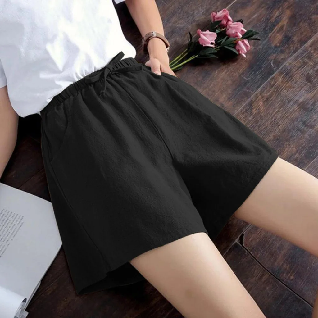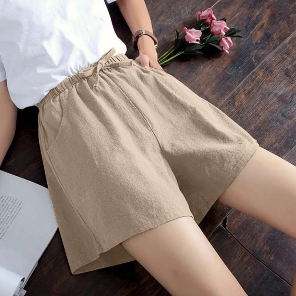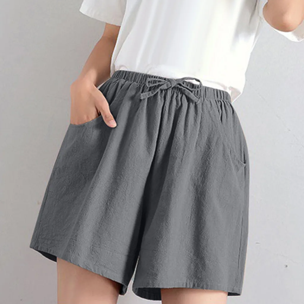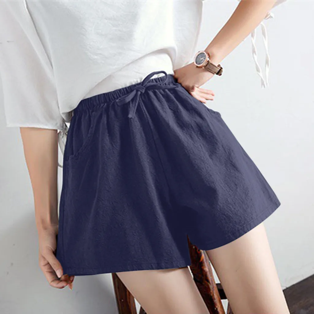 Женские шорты с высокой талией, льняные свободные повседневные тонкие широкие льняные шорты