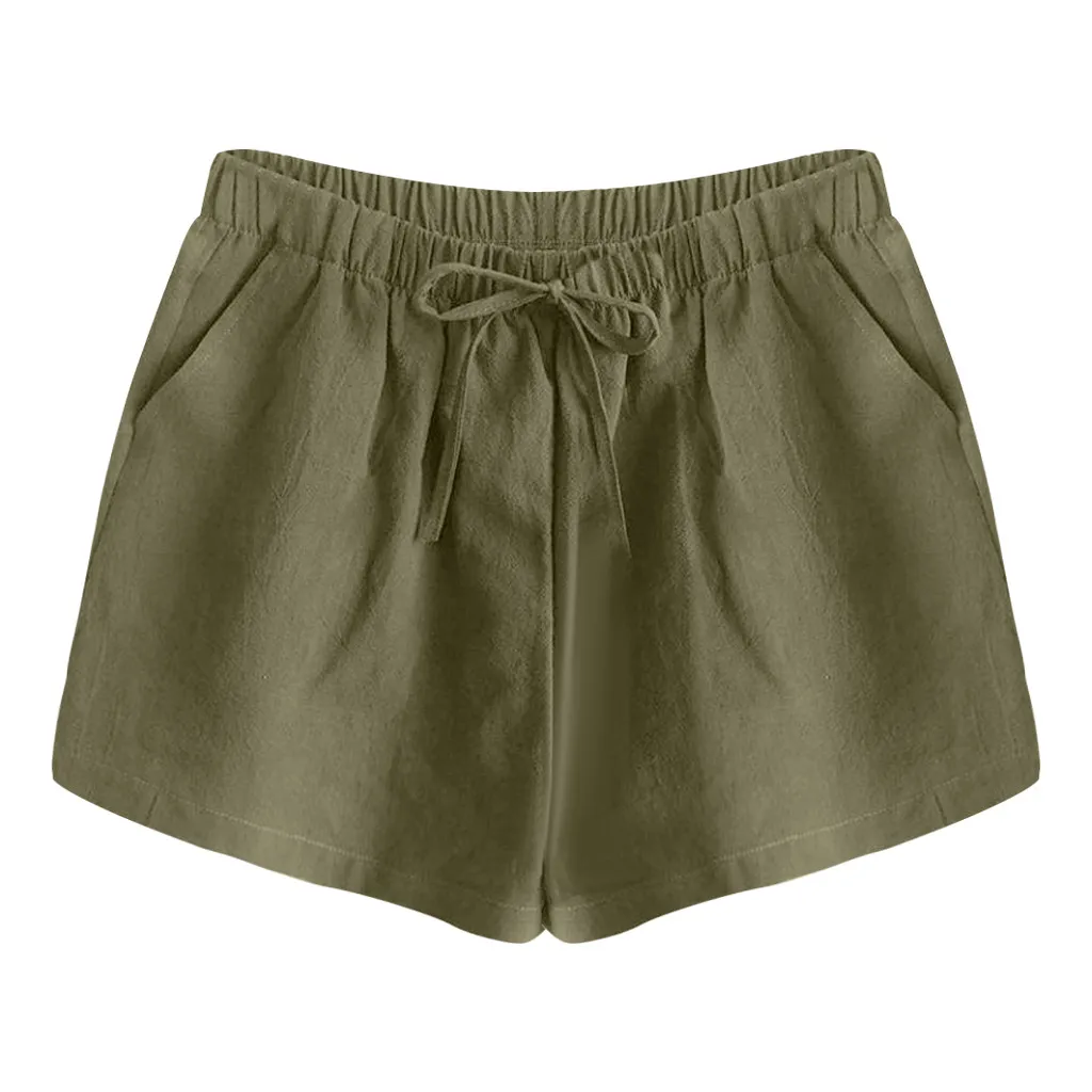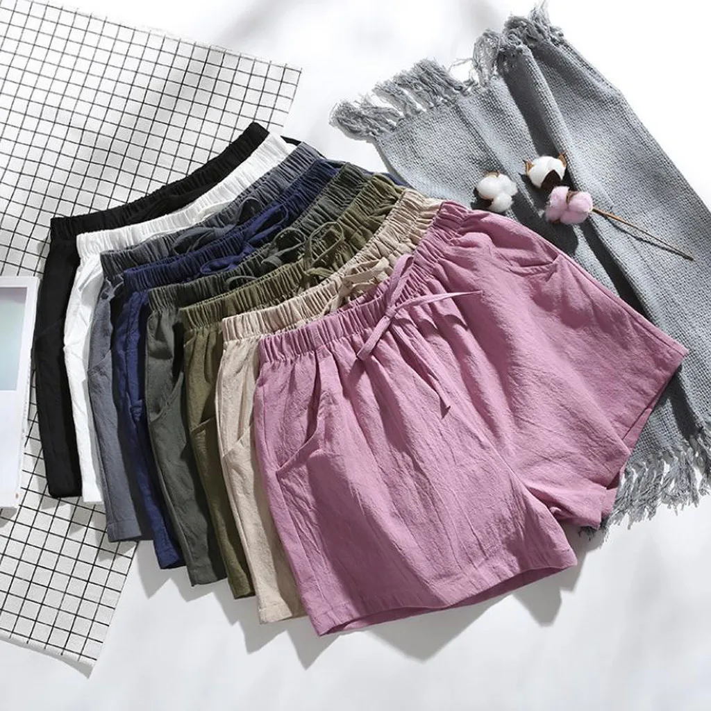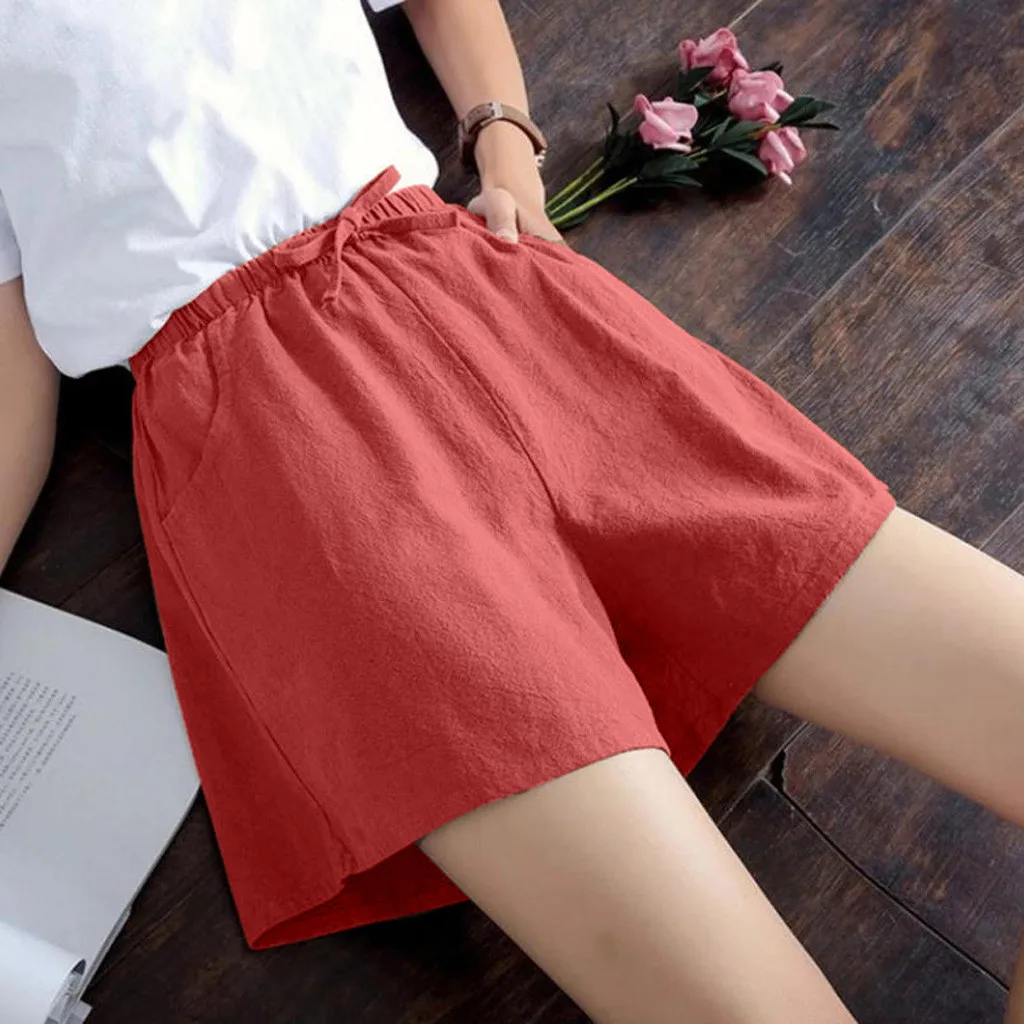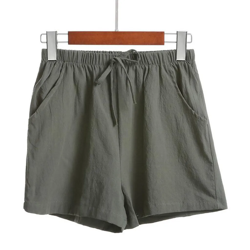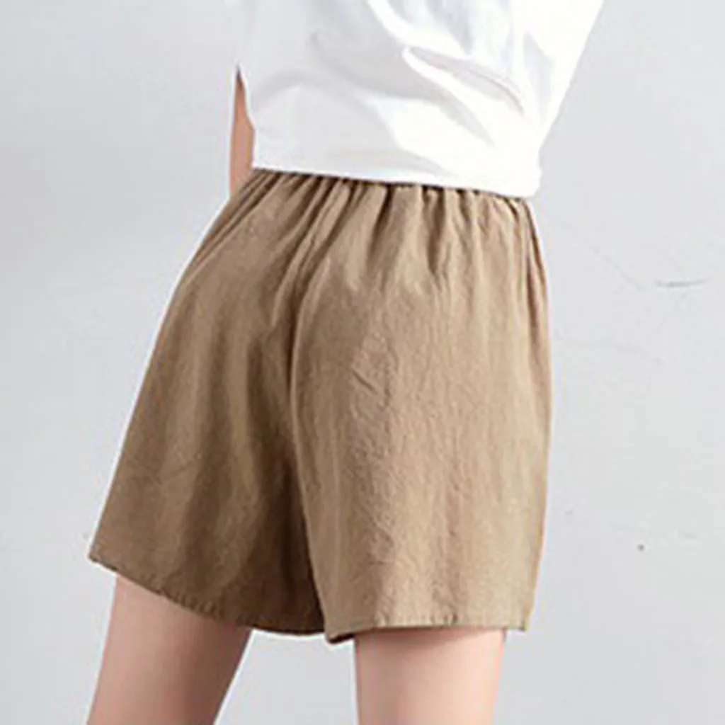 Женские шорты с высокой талией, льняные свободные повседневные тонкие широкие льняные шорты