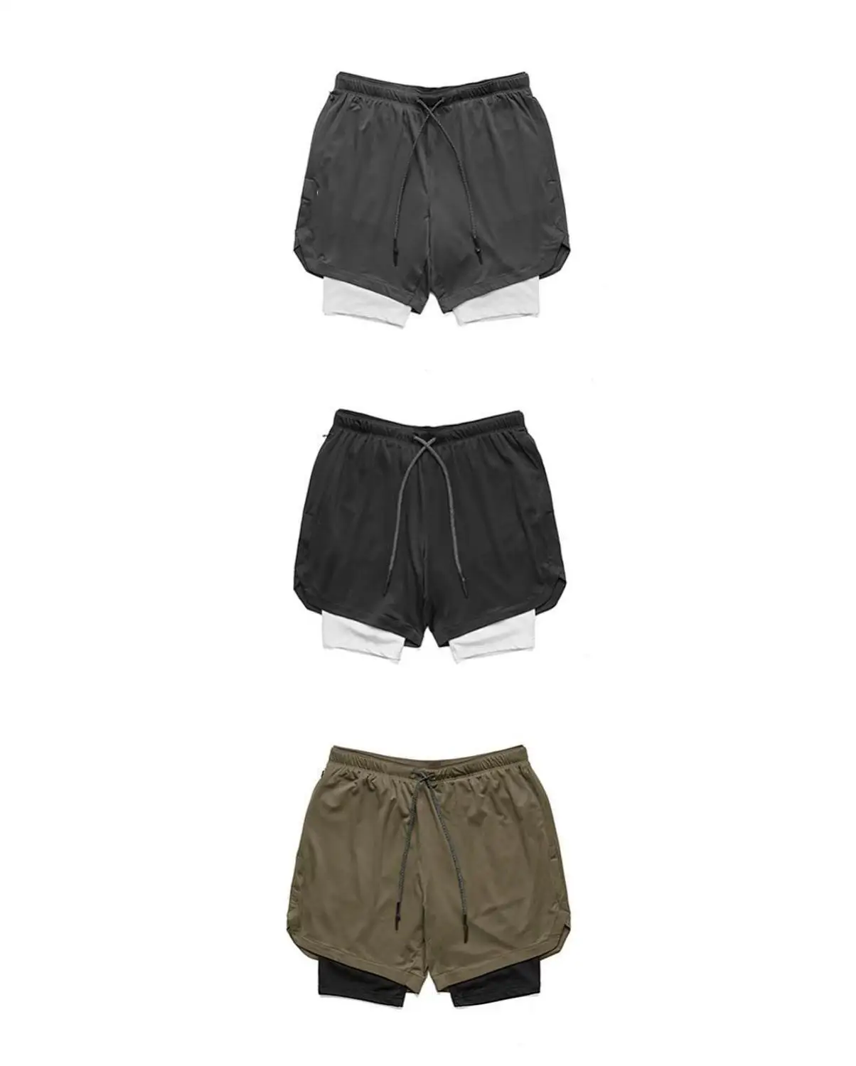 Мужские двухслойные шорты для бега 2 в 1, быстросохнущие гимнастические спортивные брюки, для фитнеса, бега, верховой езды, тренировок, упражнений, спортивная одежда