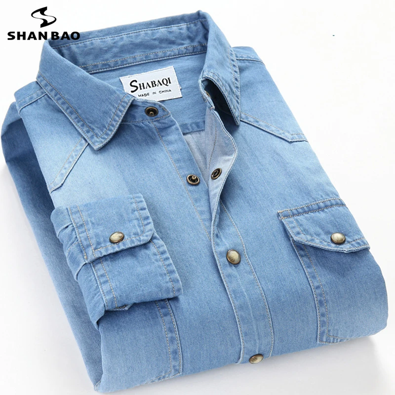 Рубашка джинсовая мужская, из 2021 хлопка, с квадратным воротником, с карманом, длинными рукавами, Весна 100%