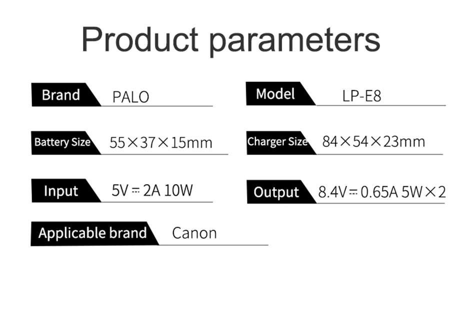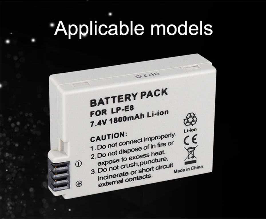 100% новый высококачественный литий-ионный аккумулятор Модель уплотнения: для CANON LP-E8 Емкость аккумулятора: 1800 мАч Выходное Напряжение: 7,4 В Описание: 1. Безопасность продукта является нашей главной заботой, наши батареи поставляются со стандартным перенапряжением и защитой от перегрева 2. Лучший запасной аккумулятор для вашей камеры 3. Наш аккумулятор отправляется с небольшим или без питания, поэтому, пожалуйста, зарядите его около 4-6 часов перед использованием. 4. Получить сертификацию CE 5. Тип батареи: литий-ионный Подходящие модели: Для EOS 550D Для EOS 600D Для EOS 650D Для EOS 700D Для EOS Rebel T2i Для EOS Rebel T3i Для EOS Rebel T4i Для EOS Rebel T5i Для Canon X4 X5 X6i и т. Д.