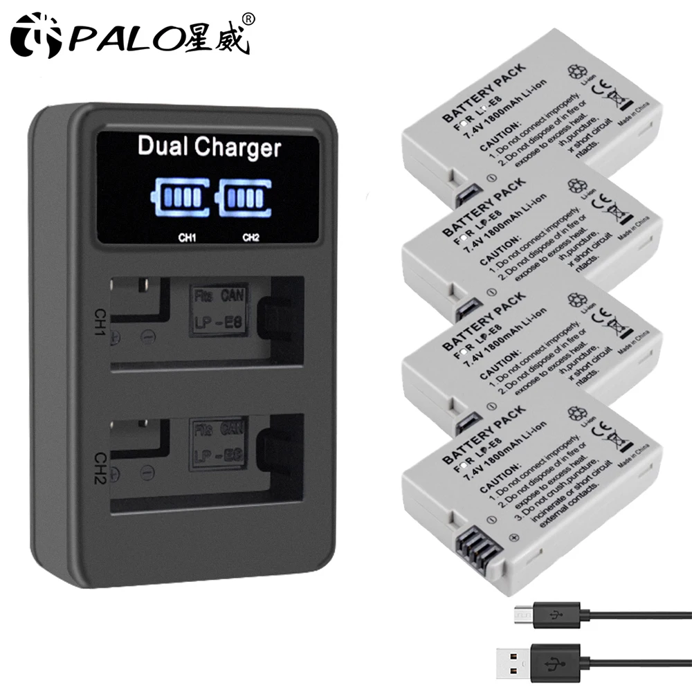 Palo 4 шт. LP-E8 батарея для камеры LP E8 + LPE8 USB умное зарядное устройство для Canon EOS 550D 600D 650D 700D X4 X5 X6i X7i T2i T3i