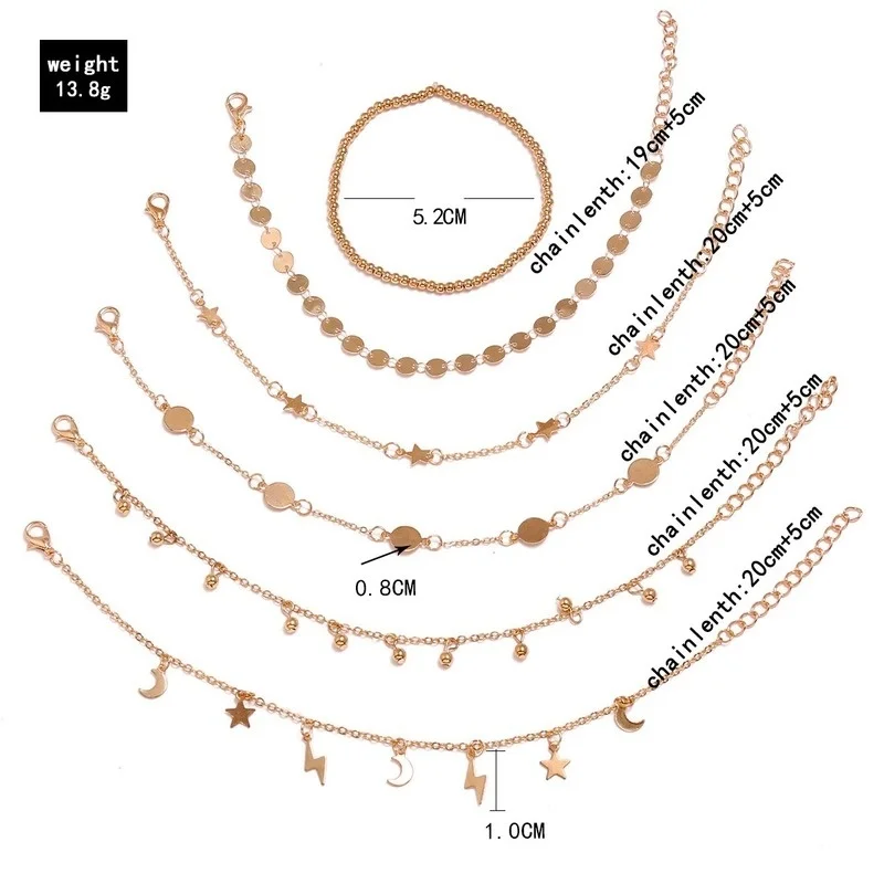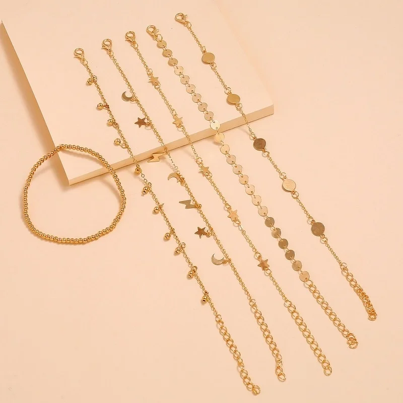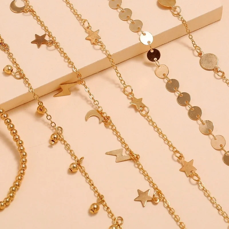 6 шт.компл. молния Луна Звезда ножной браслет Mutilayer ножной браслет пляжная цепочка для ног Ювелирные изделия